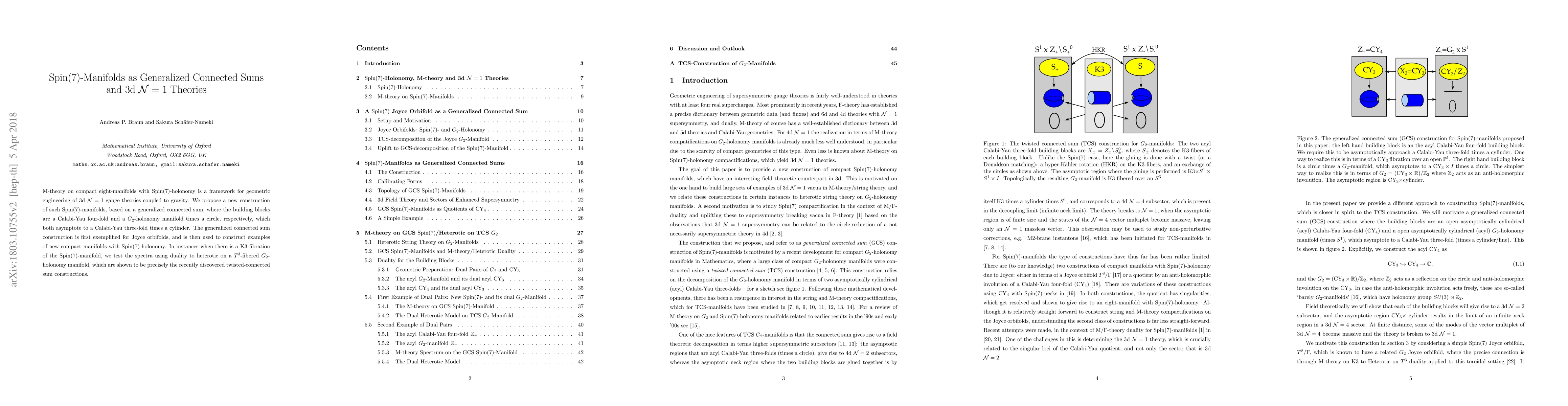 M-theory on compact eight-manifolds with $\mathrm{Spin}(7)$-holonomy is a framework for geometric engineering of 3d $\mathcal{N}=1$ gauge theories coupled to gravity. We propose a new construction of such $\mathrm{Spin}(7)$-manifolds, based on a generalized connected sum, where the building blocks are a Calabi-Yau four-fold and a $G_2$-holonomy manifold times a circle, respectively, which both asymptote to a Calabi-Yau three-fold times a cylinder. The generalized connected sum construction is first exemplified for Joyce orbifolds, and is then used to construct examples of new compact manifolds with $\mathrm{Spin}(7)$-holonomy. In instances when there is a K3-fibration of the $\mathrm{Spin}(7)$-manifold, we test the spectra using duality to heterotic on a $T^3$-fibered $G_2$-holonomy manifold, which are shown to be precisely the recently discovered twisted-connected sum constructions.