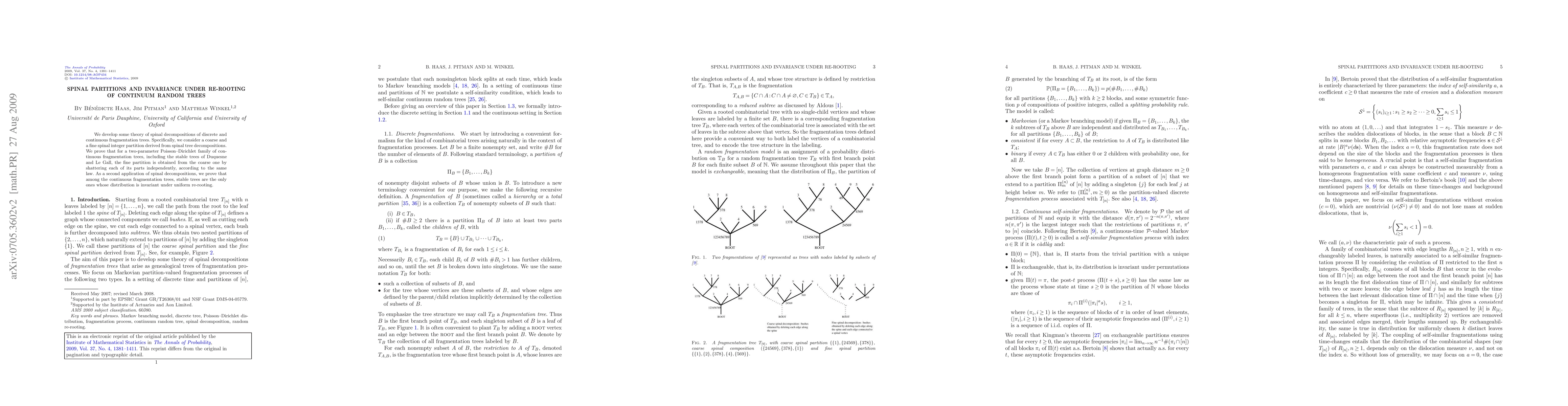 We develop some theory of spinal decompositions of discrete and continuous fragmentation trees. Specifically, we consider a coarse and a fine spinal integer partition derived from spinal tree decompositions. We prove that for a two-parameter Poisson--Dirichlet family of continuous fragmentation trees, including the stable trees of Duquesne and Le Gall, the fine partition is obtained from the coarse one by shattering each of its parts independently, according to the same law. As a second application of spinal decompositions, we prove that among the continuous fragmentation trees, stable trees are the only ones whose distribution is invariant under uniform re-rooting.