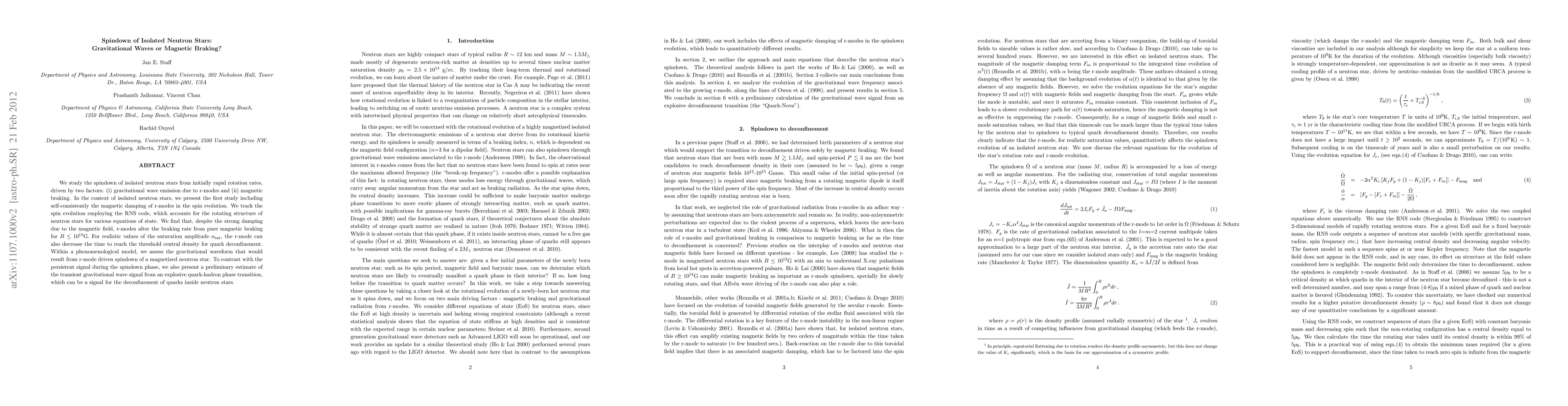 This paper investigates the spindown mechanisms of isolated neutron stars, focusing on gravitational wave emission from r-modes and magnetic braking. It finds that r-modes can significantly alter the braking rate and potentially influence the timing of quark deconfinement, even under strong magnetic fields.