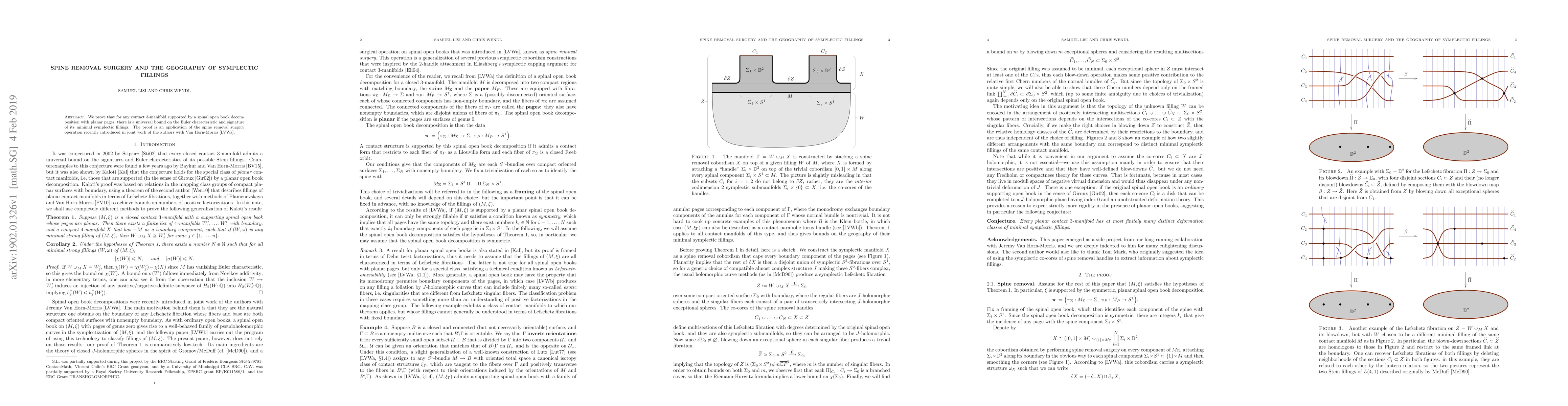 Summary: This paper establishes a universal bound on the Euler characteristic and signature of minimal symplectic fillings for contact 3-manifolds supported by spinal open book decompositions with planar pages, using the spine removal surgery operation introduced in prior collaborative work.