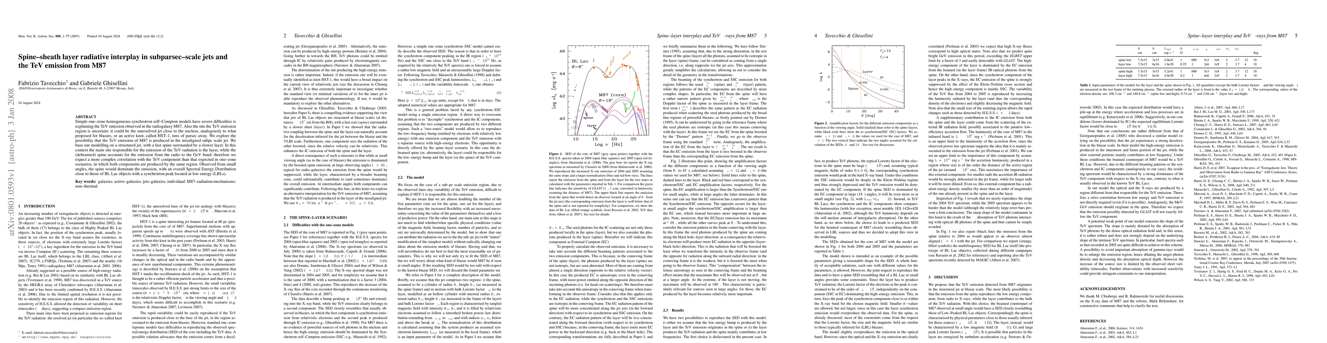 The TeV emission from M87 is likely produced in a subparsec-scale jet with a spine-sheath layer radiative interplay, suggesting a complex correlation between the TeV component and lower energy emissions.