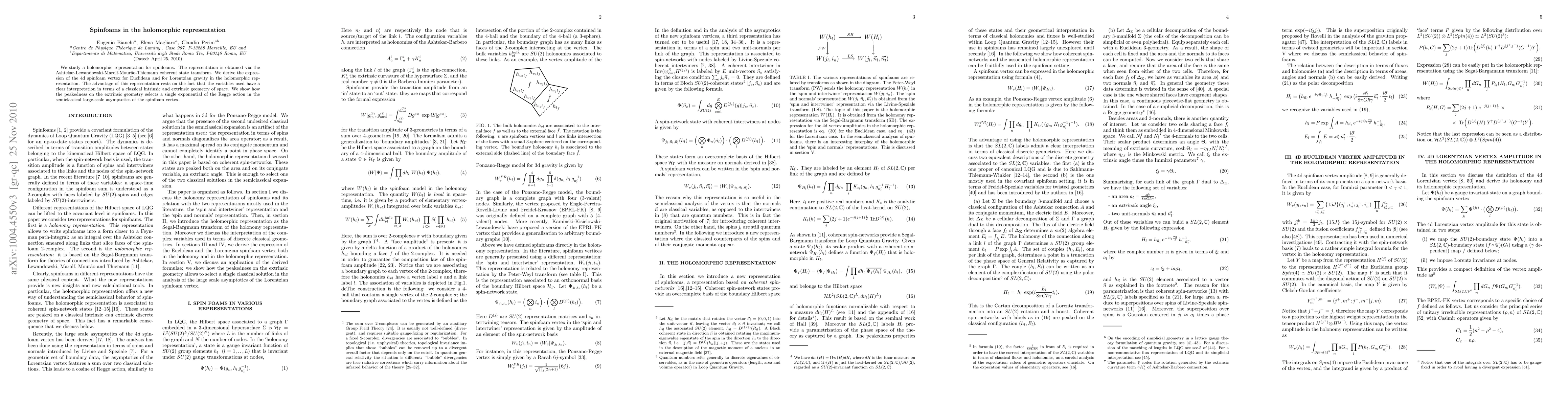 Researchers develop a new representation for spinfoams in holomorphic form, enabling clear interpretation of classical geometry variables and selecting the Regge action in large-scale asymptotics.