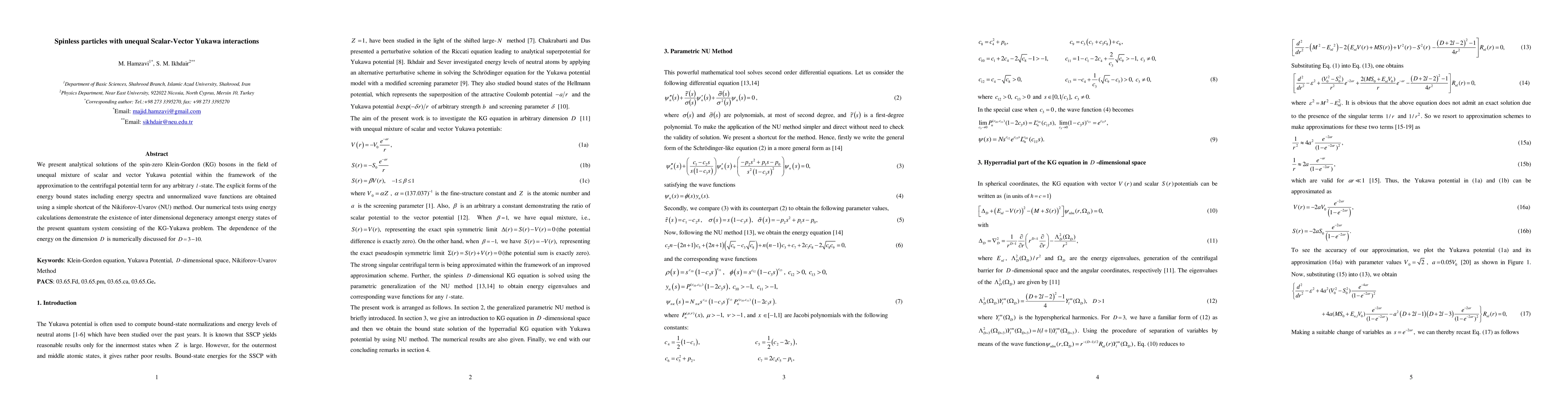 This paper solves a quantum mechanics problem involving spinless particles with mixed scalar and vector interactions, finding degenerate energy states across different dimensions.
