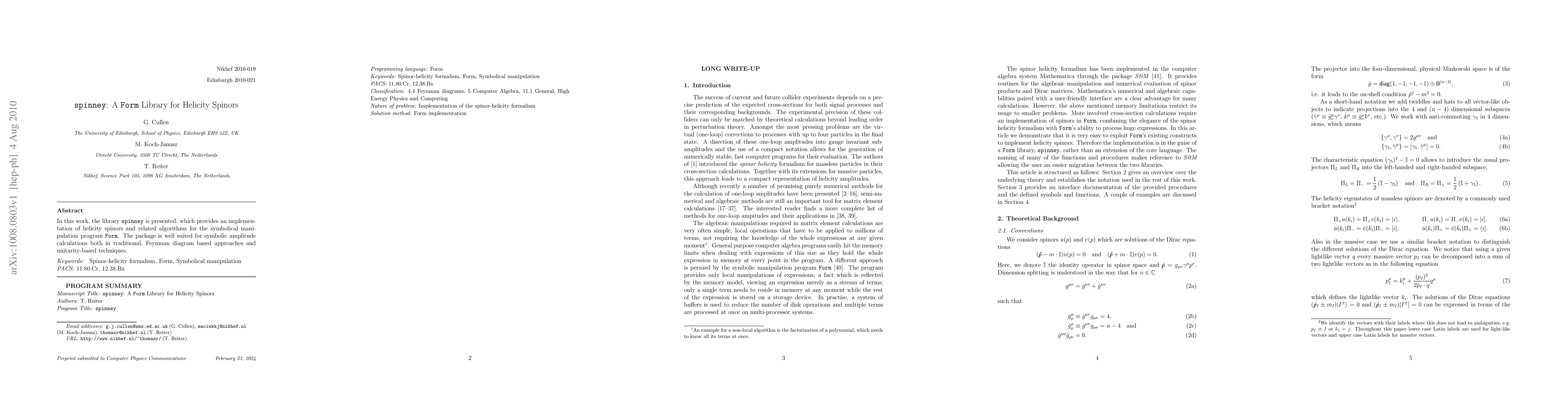 A new library called spinney provides an implementation of helicity spinors for symbolic manipulation in particle physics calculations, enabling efficient amplitude calculations using traditional and unitarity-based methods.