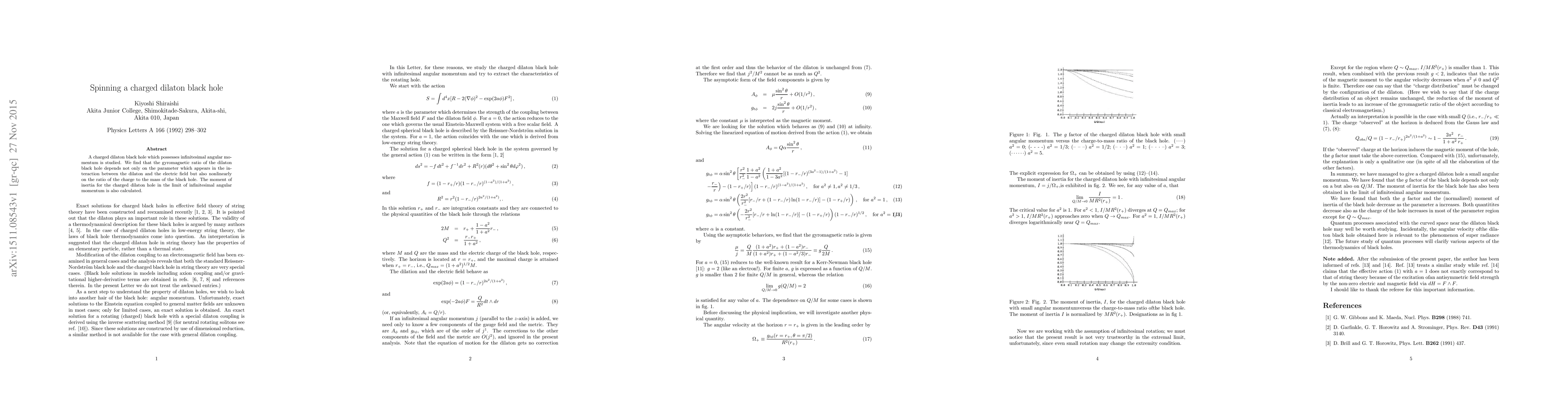 This paper investigates a charged dilaton black hole with minimal angular momentum, revealing that its gyromagnetic ratio is influenced by both the dilaton-electric field interaction parameter and the charge-to-mass ratio, nonlinearly. The study also calculates the moment of inertia for this black hole under the condition of infinitesimal angular momentum.