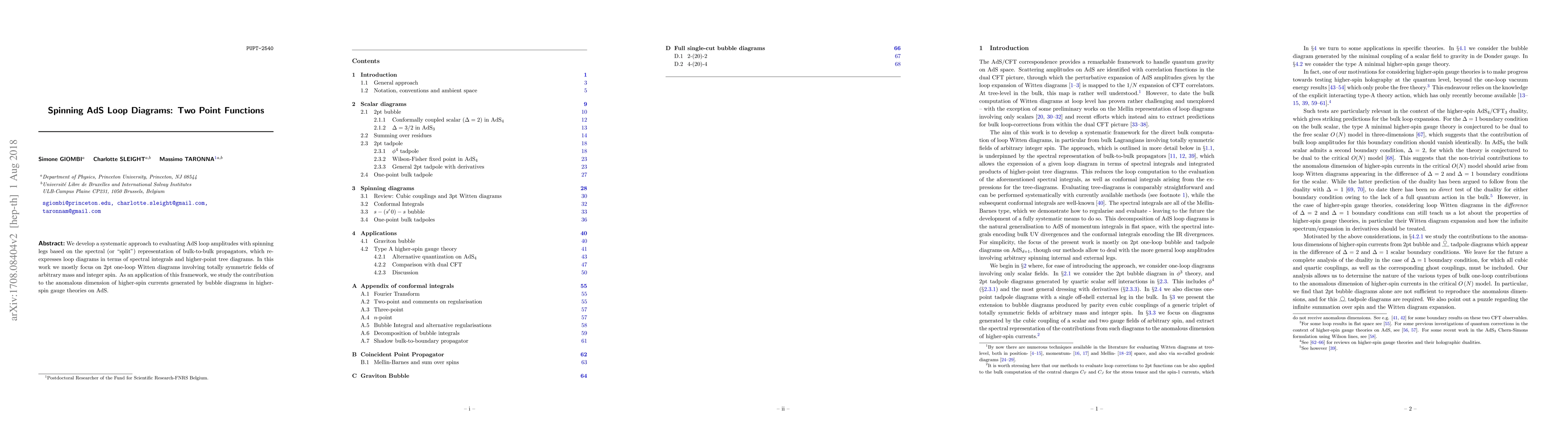 We develop a systematic approach to evaluating AdS loop amplitudes based on the spectral (or "split") representation of bulk-to-bulk propagators, which re-expresses loop diagrams in terms of spectral integrals and higher-point tree diagrams. In this work we focus on 2pt one-loop Witten diagrams involving totally symmetric fields of arbitrary mass and integer spin. As an application of this framework, we study the contribution to the anomalous dimension of higher-spin currents generated by bubble diagrams in higher-spin gauge theories on AdS.