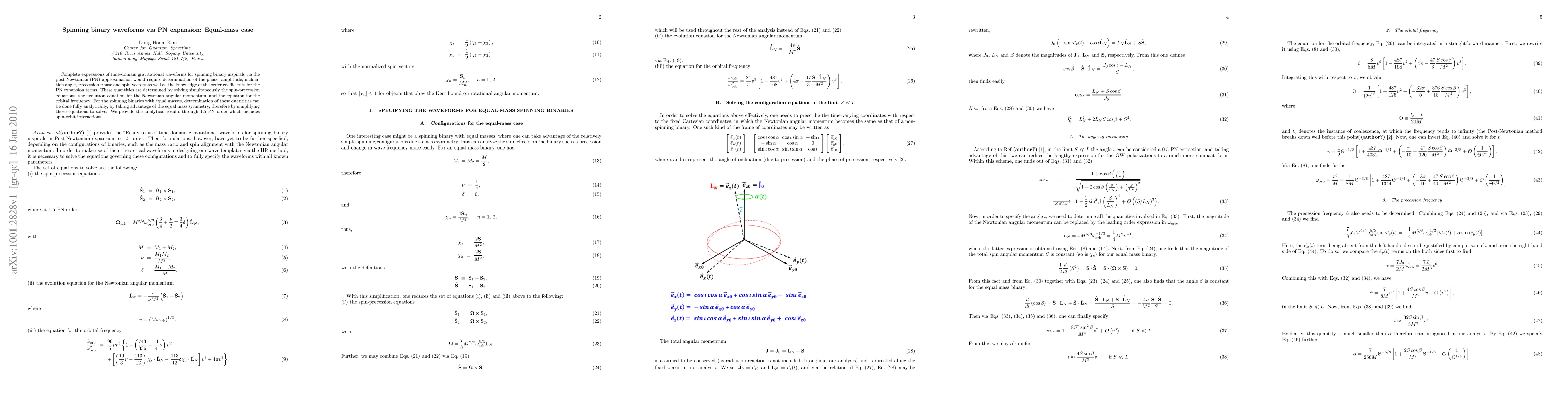 Researchers developed an analytical solution for time-domain gravitational waveforms in spinning binary systems with equal masses, simplifying the solving process through symmetry and achieving 1.5 post-Newtonian order results.