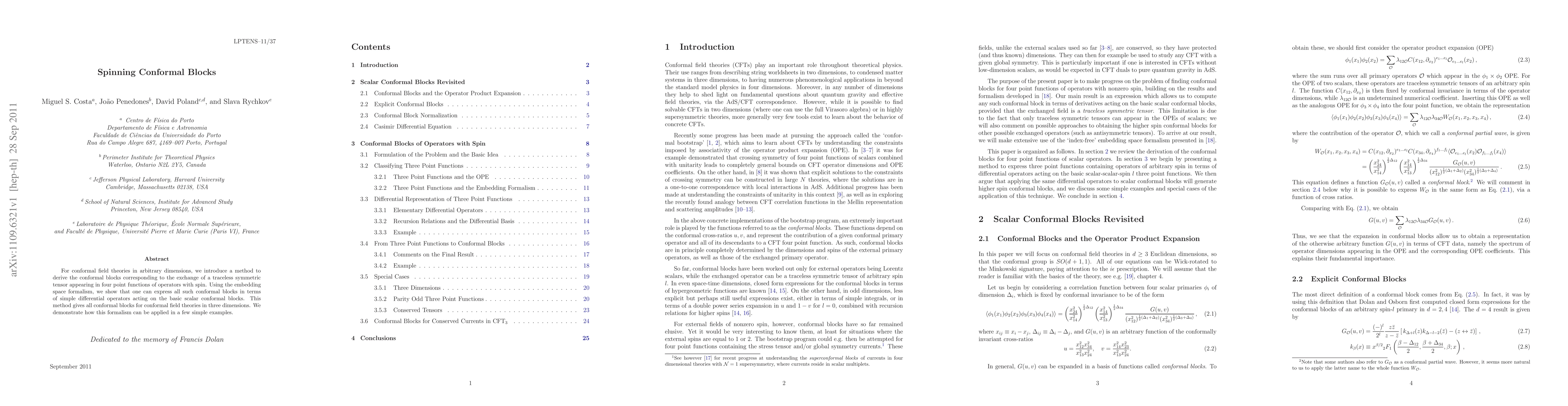 This paper introduces a method for deriving conformal blocks in arbitrary dimensions via the embedding space formalism, expressing them in terms of differential operators on scalar conformal blocks, and demonstrates its application in three-dimensional conformal field theories through simple examples.