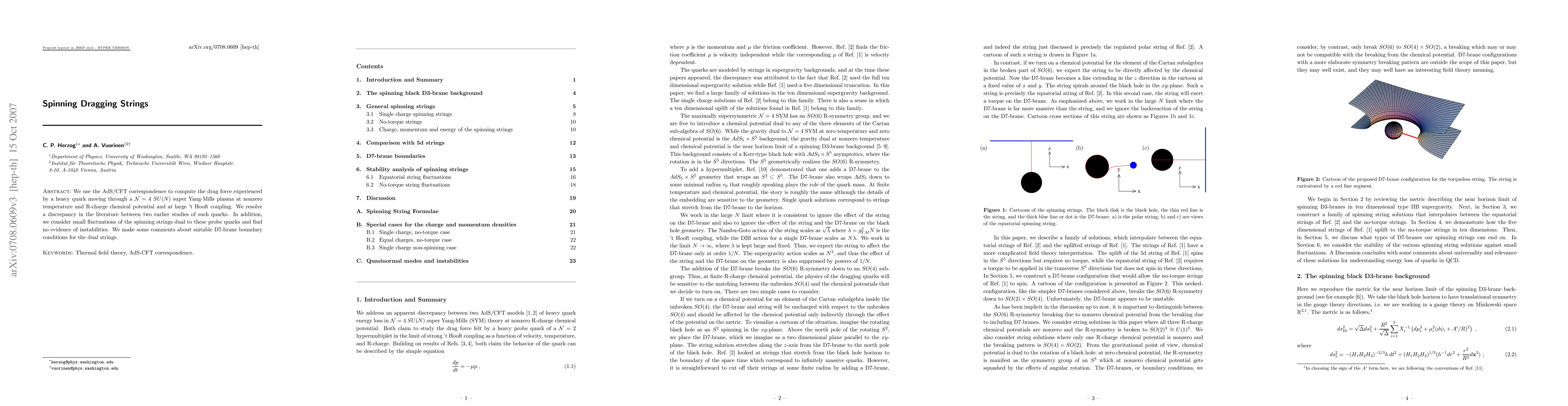 This paper uses the AdS/CFT correspondence to calculate the drag force on heavy quarks in a high-temperature supersymmetric plasma, resolving previous discrepancies. It also examines small fluctuations of spinning strings dual to these quarks and finds no instabilities, along with comments on appropriate D7-brane boundary conditions.