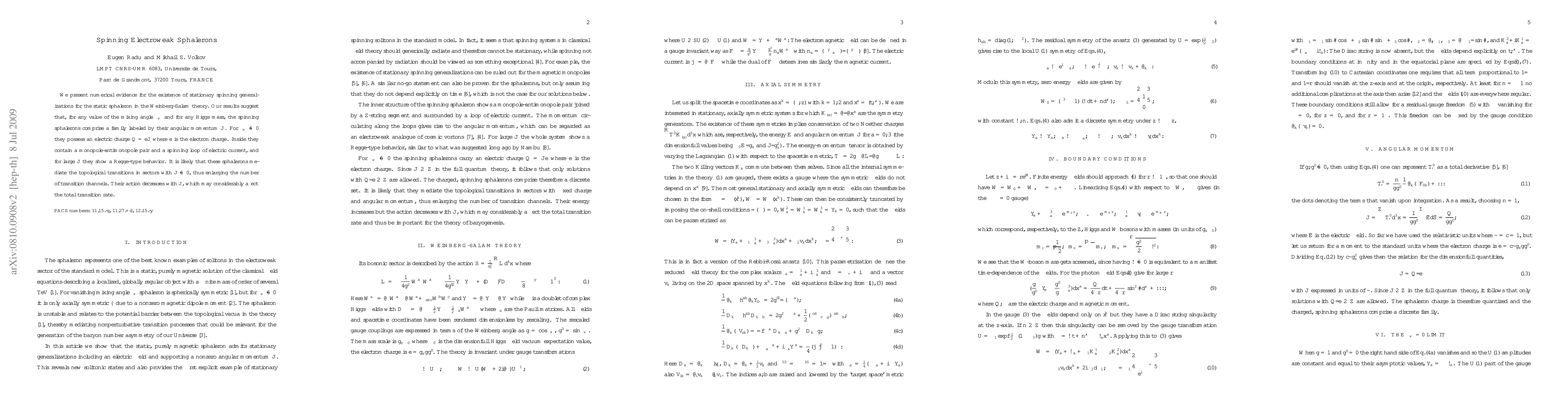 This paper provides numerical evidence for spinning generalizations of the static sphaleron in the Weinberg-Salam theory, showing that they possess a monopole-antimonopole pair and a spinning current loop. These spinning sphalerons may mediate topological transitions and their action decreases with angular momentum, potentially impacting transition rates.