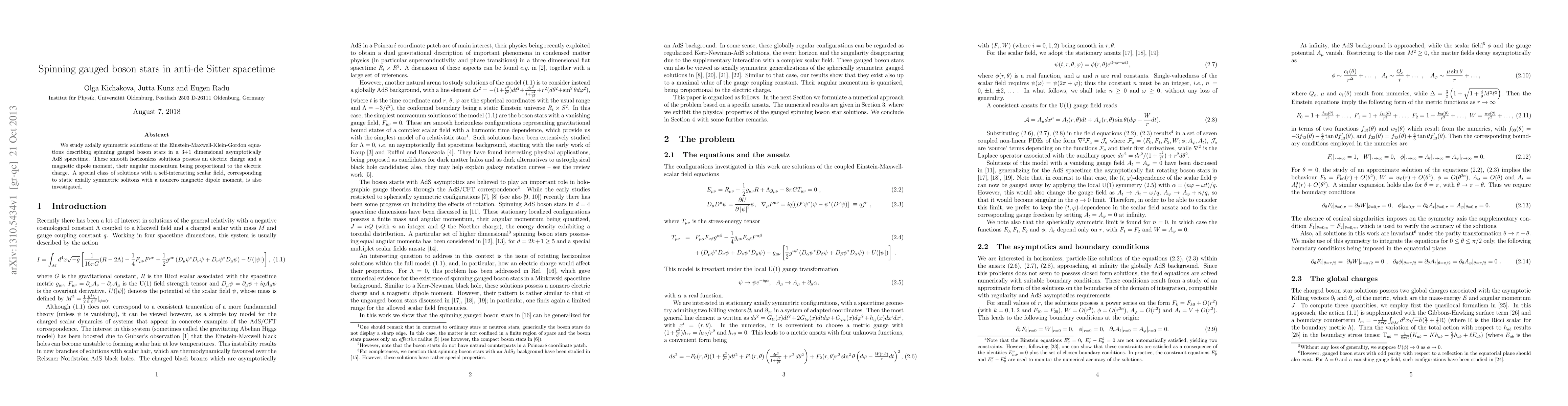 We study axially symmetric solutions of the Einstein-Maxwell-Klein-Gordon equations describing spinning gauged boson stars in a 3+1 dimensional asymptotically AdS spacetime. These smooth horizonless solutions possess an electric charge and a magnetic dipole moment, their angular momentum being proportional to the electric charge. A special class of solutions with a self-interacting scalar field, corresponding to static axially symmetric solitons with a nonzero magnetic dipole moment, is also investigated.