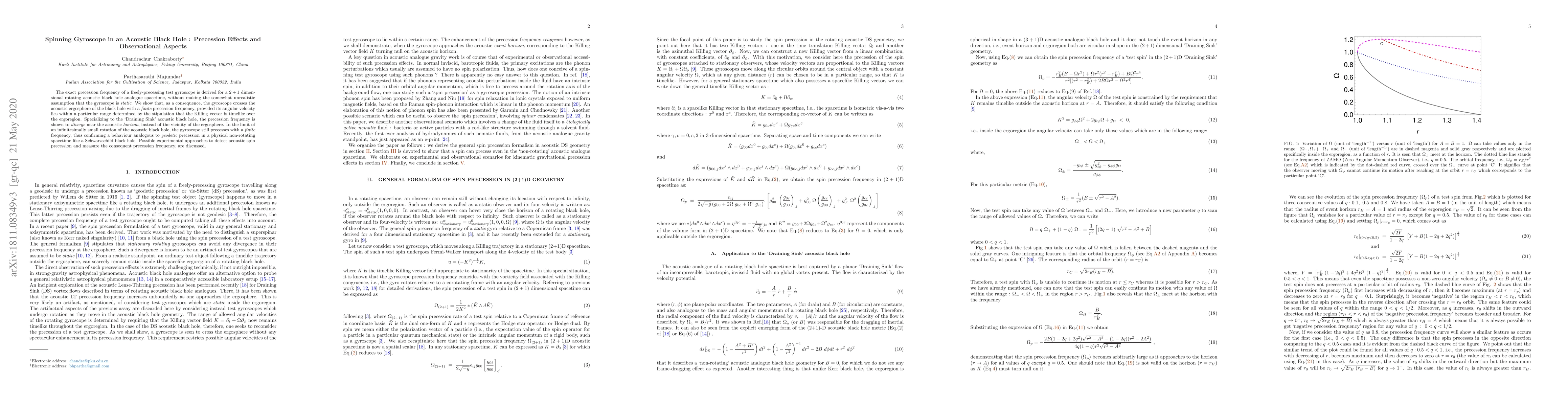 The exact precession frequency of a freely-precessing test gyroscope is derived for a $2+1$ dimensional rotating acoustic black hole analogue spacetime, without making the somewhat unrealistic assumption that the gyroscope is static. We show that, as a consequence, the gyroscope crosses the acoustic ergosphere of the black hole with a finite precession frequency, provided its angular velocity lies within a particular range determined by the stipulation that the Killing vector is timelike over the ergoregion. Specializing to the `Draining Sink' acoustic black hole, the precession frequency is shown to diverge near the acoustic horizon, instead of the vicinity of the ergosphere. In the limit of an infinitesimally small rotation of the acoustic black hole, the gyroscope still precesses with a finite frequency, thus confirming a behaviour analogous to geodetic precession in a physical non-rotating spacetime like a Schwarzschild black hole. Possible experimental approaches to detect acoustic spin precession and measure the consequent precession frequency, are discussed.