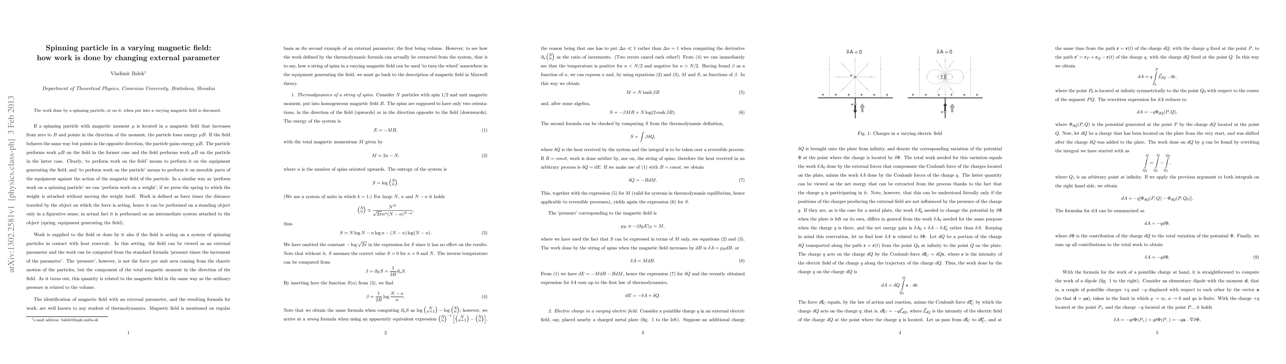The work done by a spinning particle, or on it, when put into a varying magnetic field is discussed.