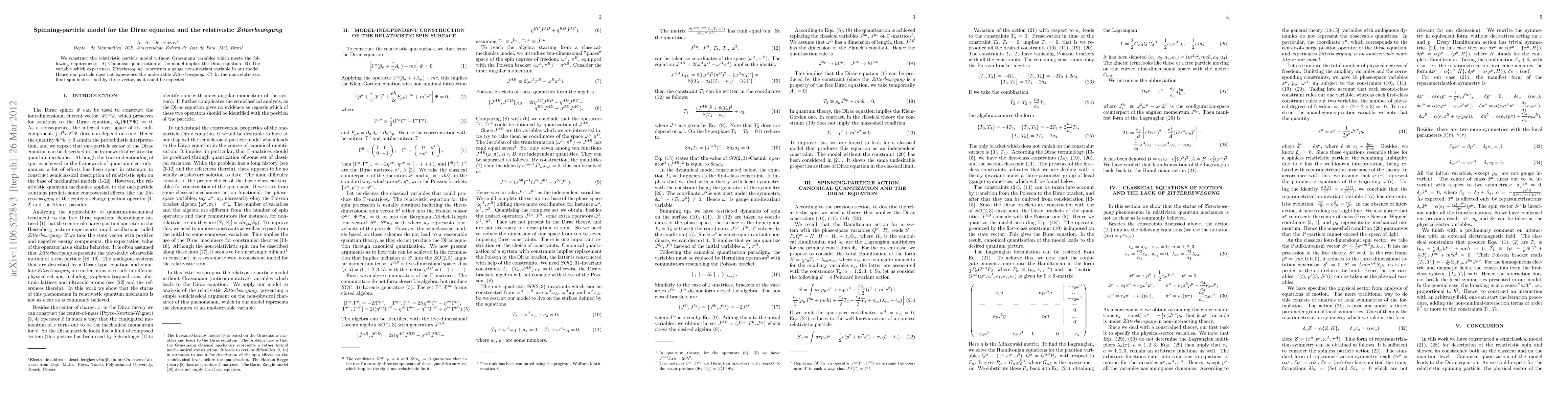 The paper proposes a relativistic spinning-particle model that canonically quantizes to the Dirac equation while avoiding Zitterbewegung for the gauge non-invariant variable, and correctly describes spin in the nonrelativistic limit as a three-vector. This model eliminates the undesirable Zitterbewegung phenomenon.