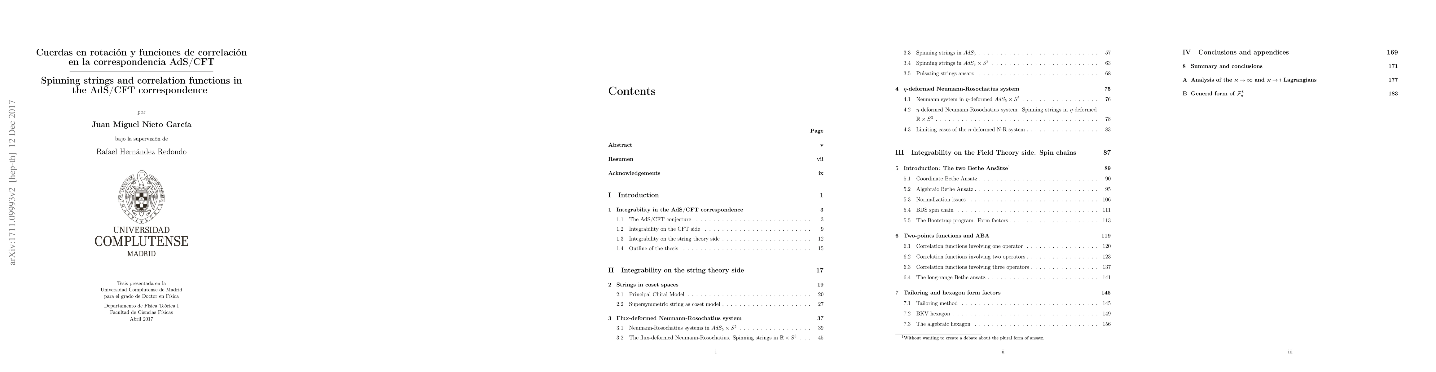 This paper explores the AdS/CFT correspondence through the lens of integrability, focusing on the dispersion relation of closed spinning strings in deformed AdS_3 × S^3 backgrounds and the computation of correlation functions in the gauge theory side using various methods. The string theory computations leverage the classical integrability provided by Uhlenbeck constants, while the gauge theory side employs the Algebraic Bethe Ansatz and the hexagon framework for correlation functions.