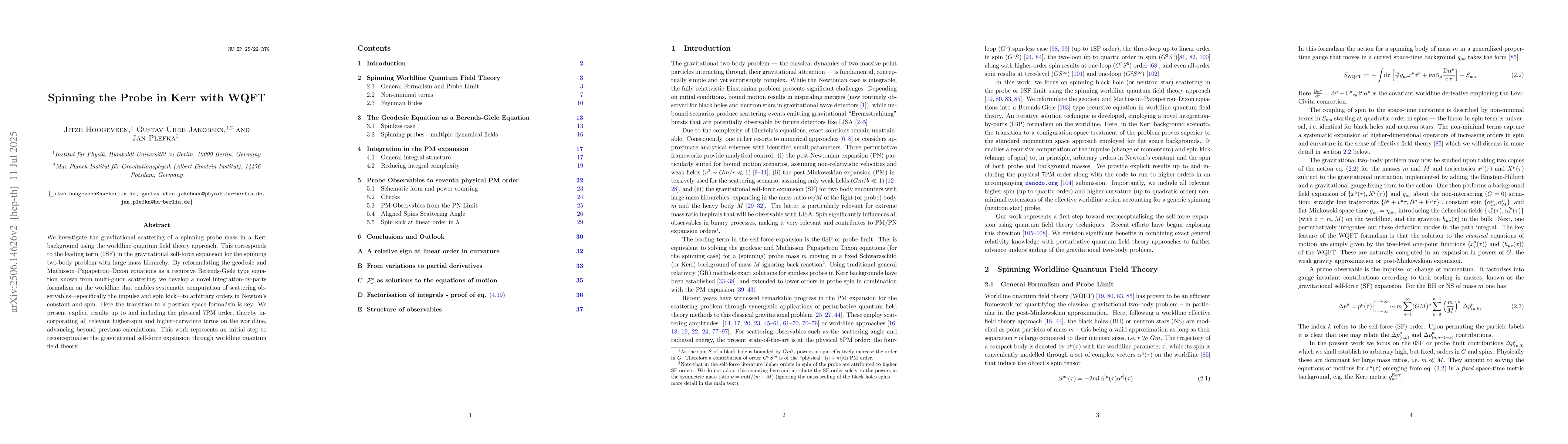 We investigate the gravitational scattering of a spinning probe mass in a Kerr background using the worldline quantum field theory (WQFT) approach. This corresponds to the leading term (0SF) in the gravitational self-force expansion for the spinning two-body problem with large mass hierarchy. By reformulating the geodesic and Mathisson-Papapetrou-Dixon equations as a recursive Berends-Giele type equation known from multi-gluon scattering, we develop a novel integration-by-parts formalism on the worldline that enables systematic computation of scattering observables - specifically the impulse and spin kick - to arbitrary orders in Newton's constant and spin. Here, the transition to a position space formalism is key. We present explicit results up to and including the physical 7PM order, thereby incorporating all relevant higher-spin and higher-curvature terms on the worldline, advancing beyond previous calculations. This work represents an initial step to reconceptualise the gravitational self-force expansion through worldline quantum field theory.