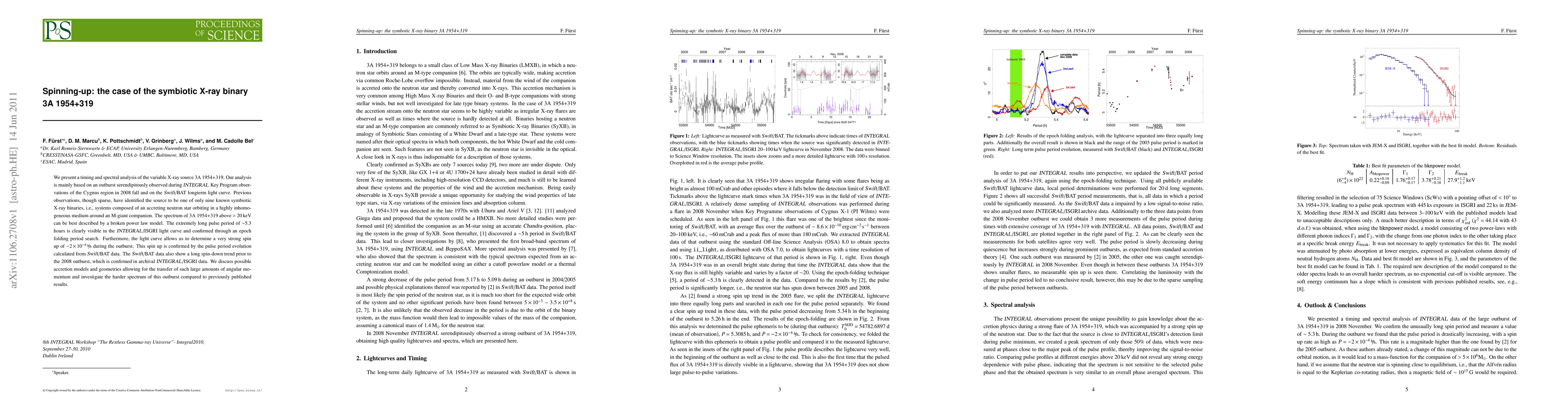 The research is based on a timing and spectral analysis of the X-ray source 3A 1954+319 using INTEGRAL Key Program observations in 2008 and Swift/BAT long-term light curve data.