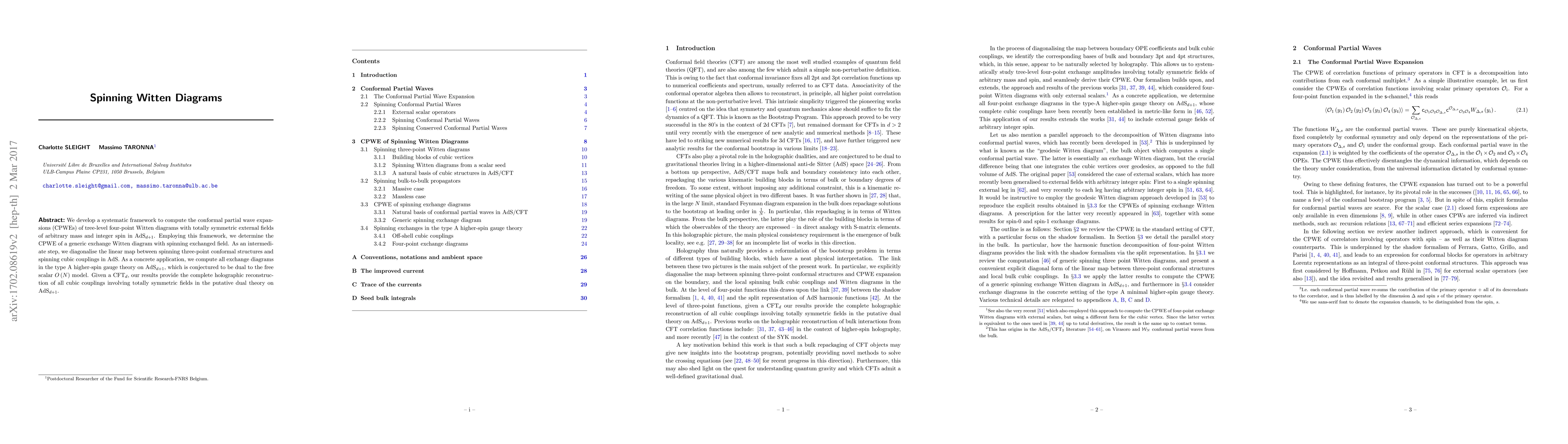 We develop a systematic framework to compute the conformal partial wave expansions (CPWEs) of tree-level four-point Witten diagrams with totally symmetric external fields of arbitrary mass and integer spin in AdS$_{d+1}$. Employing this framework, we determine the CPWE of a generic exchange Witten diagram with spinning exchanged field. As an intermediate step, we diagonalise the linear map between spinning three-point conformal structures and spinning cubic couplings in AdS. As a concrete application, we compute all exchange diagrams in the type A higher-spin gauge theory on AdS$_{d+1}$, which is conjectured to be dual to the free scalar $O\left(N\right)$ model. Given a CFT$_d$, our results provide the complete holographic reconstruction of all cubic couplings involving totally symmetric fields in the putative dual theory on AdS$_{d+1}$.