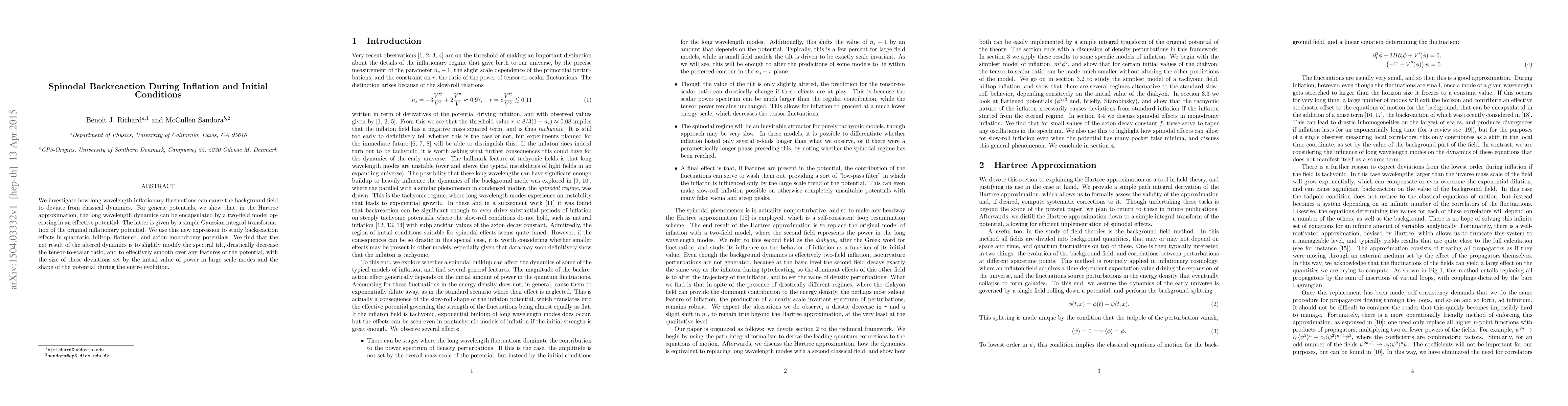 We investigate how long wavelength inflationary fluctuations can cause the background field to deviate from classical dynamics. For generic potentials, we show that, in the Hartree approximation, the long wavelength dynamics can be encapsulated by a two-field model operating in an effective potential. The latter is given by a simple Gaussian integral transformation of the original inflationary potential. We use this new expression to study backreaction effects in quadratic, hilltop, flattened, and axion monodromy potentials. We find that the net result of the altered dynamics is to slightly modify the spectral tilt, drastically decrease the tensor-to-scalar ratio, and to effectively smooth over any features of the potential, with the size of these deviations set by the initial value of power in large scale modes and the shape of the potential during the entire evolution.