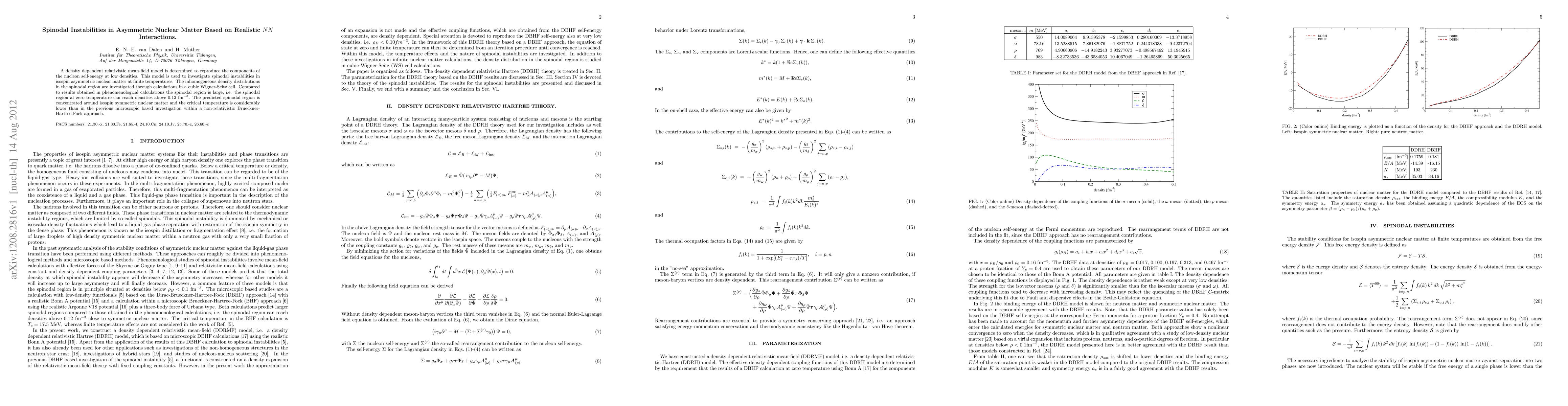 A density dependent relativistic mean-field model is determined to reproduce the components of the nucleon self-energy at low densities. This model is used to investigate spinodal instabilities in isospin asymmetric nuclear matter at finite temperatures. The inhomogeneous density distributions in the spinodal region are investigated through calculations in a cubic Wigner-Seitz cell. Compared to results obtained in phenomenological calculations the spinodal region is large, i.e. the spinodal region at zero temperature can reach densities above 0.12 fm$^{-3}$. The predicted spinodal region is concentrated around isospin symmetric nuclear matter and the critical temperature is considerably lower than in the previous microscopic based investigation within a non-relativistic Brueckner-Hartree-Fock approach.