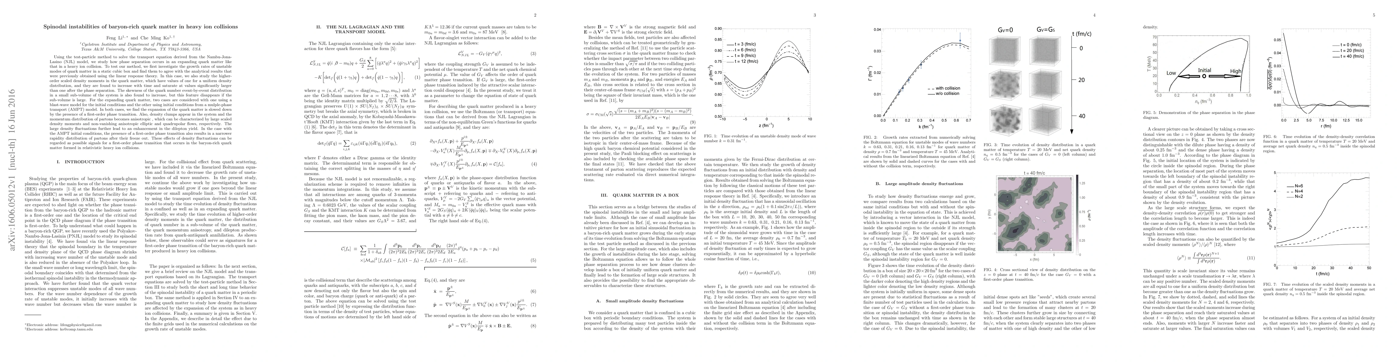 Using the test-particle method to solve the transport equation derived from the Nambu-Jona-Lasino (NJL) model, we study how phase separation occurs in an expanding quark matter like that in a heavy ion collision. To test our method, we first investigate the growth rates of unstable modes of quark matter in a static cubic box and find them to agree with the analytical results that were previously obtained using the linear response theory. In this case, we also find the higher-order scaled density moments to increase with time and saturate at values significantly larger than one, which corresponds to a uniform density distribution, after the phase separation. The skewness of the quark number event-by-event distribution in a small sub-volume of the system is also found to increase, but this feature disappears if the sub-volume is large. For the expanding quark matter, two cases are considered with one using a blast-wave model for the initial conditions and the other using initial conditions from a mulple-phase transport (AMPT) model. In both cases, we find the expansion of the quark matter is slowed down by the presence of a first-order phase transition. Also, density clumps appear in the system and the momentum distribution of partons becomes anisotropic , which can be characterized by large scaled density moments and non-vanishing anisotropic elliptic and quadrupolar flows, respectively. The large density fluctuations further lead to an enhancement in the dilepton yield. In the case with the AMPT initial conditions, the presence of a first-order phase transition also results in a narrower rapidity distribution of partons after their freeze out. These effects of density fluctuations can be regarded as possible signals for a first-order phase transition that occurs in the baryon-rich quark matter formed in relativistic heavy ion collisions.