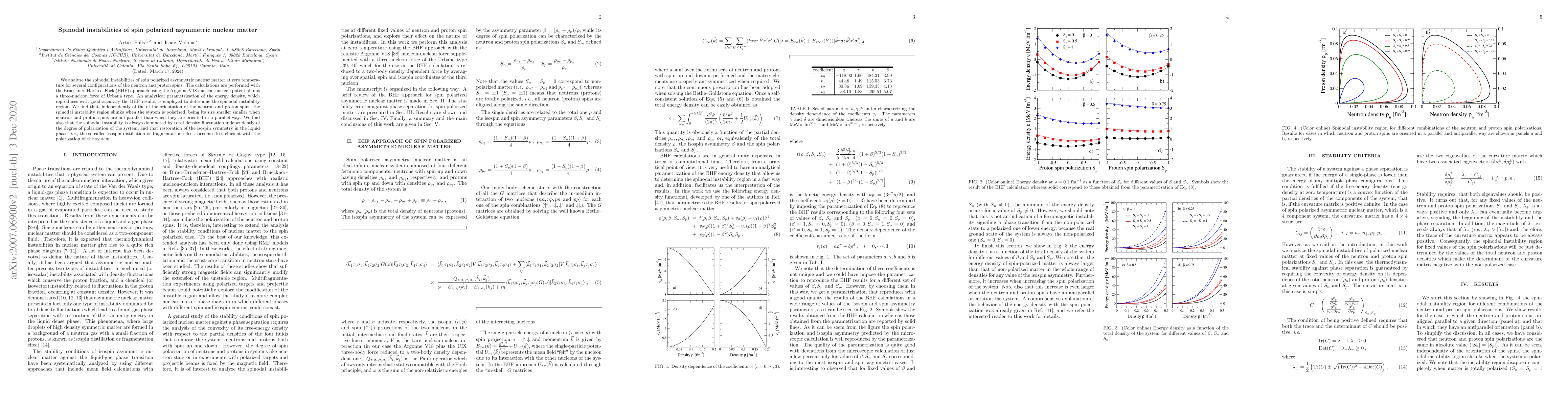 This paper investigates spinodal instabilities in spin-polarized asymmetric nuclear matter at zero temperature using the BHF approach. It finds that spin polarization reduces the size of the instability region, with antiparallel spins leading to a smaller region than parallel spins, and that density fluctuations dominate the instability regardless of polarization.