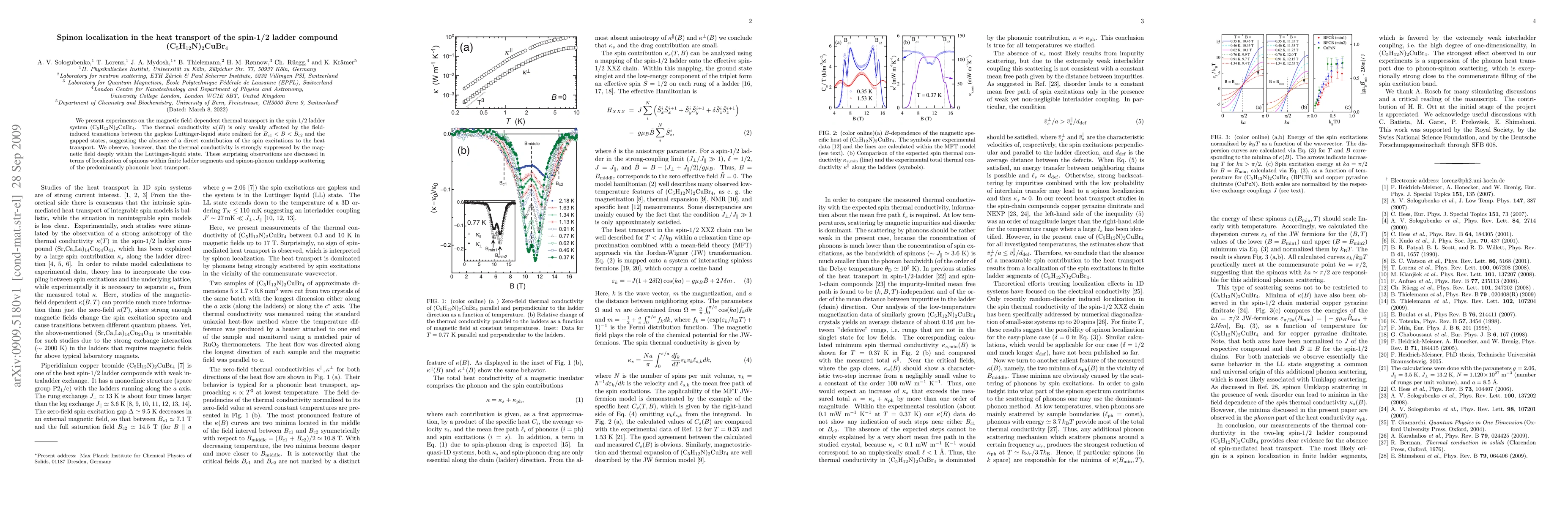 Summary: Experiments reveal that thermal conductivity in a spin-1/2 ladder compound is minimally affected by field-induced state transitions, indicating spin excitations do not directly contribute to heat transport. However, deep within the Luttinger-liquid state, thermal conductivity is significantly suppressed due to spinon localization and spinon-phonon interactions.