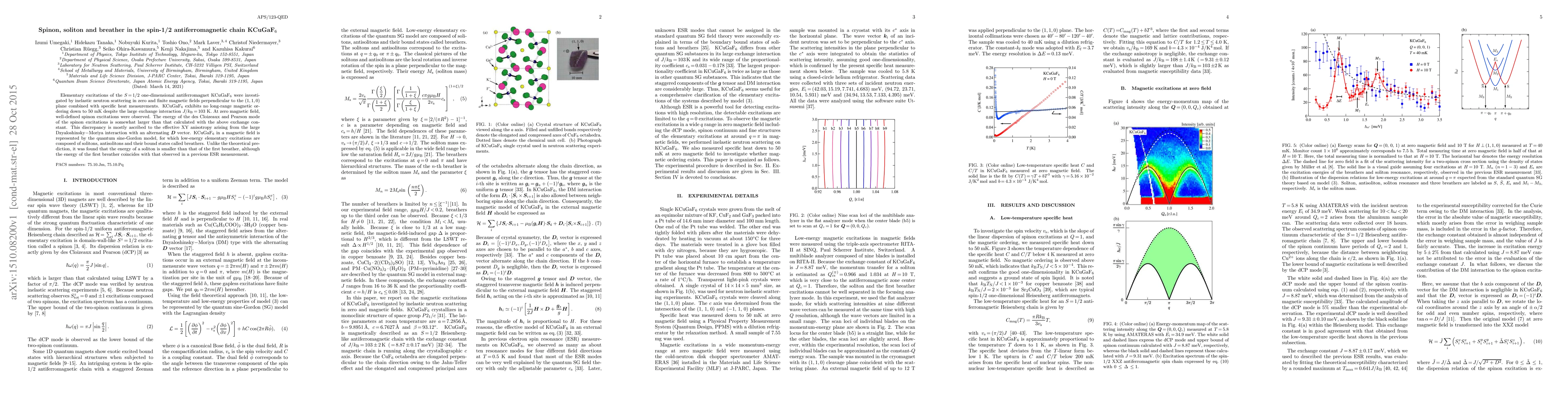 Elementary excitations of the S=1/2 one-dimensional antiferromagnet KCuGaF_6 were investigated by inelastic neutron scattering in zero and finite magnetic fields perpendicular to the (1, 1, 0) plane combined with specific heat measurements. KCuGaF$_6$ exhibits no long-range magnetic ordering down to 50 mK despite the large exchange interaction J/k_B=103 K. At zero magnetic field, well-defined spinon excitations were observed. The energy of the des Cloizeaux and Pearson mode of the spinon excitations is somewhat larger than that calculated with the above exchange constant. This discrepancy is mostly ascribed to the effective XY anisotropy arising from the large Dzyaloshinsky-Moriya interaction with an alternating D vector. KCuGaF_6 in a magnetic field is represented by the quantum sine-Gordon model, for which low-energy elementary excitations are composed of solitons, antisolitons and their bound states called breathers. Unlike the theoretical prediction, it was found that the energy of a soliton is smaller than that of the first breather, although the energy of the first breather coincides with that observed in a previous ESR measurement.
