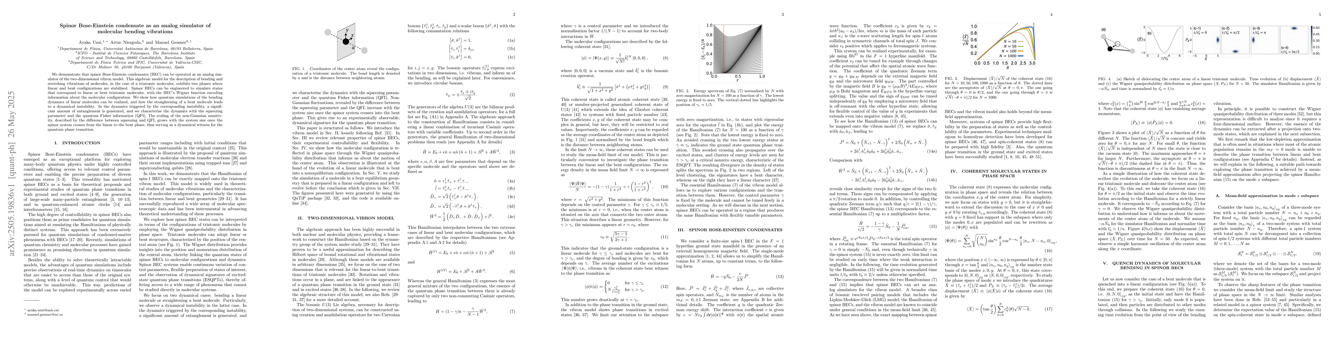 The work introduces a new application of spinor BECs in simulating molecular vibrations, offering insights into quantum phase transitions through the analysis of entanglement and non-Gaussian sensitivity in the system.