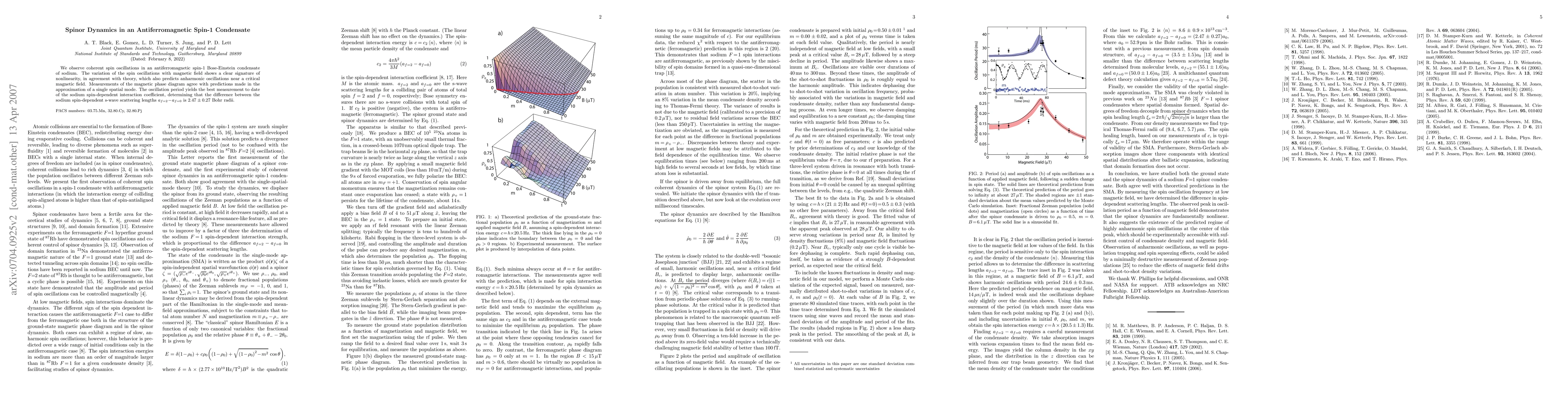 This paper reports coherent spin oscillations in an antiferromagnetic spin-1 Bose-Einstein condensate of sodium, revealing nonlinear behavior with magnetic field, in line with theoretical predictions of anharmonic oscillations. The study provides the most precise measurement to date of the sodium spin-dependent interaction coefficient, determining the difference between spin-dependent scattering lengths as $2.47\pm0.27$ Bohr radii.