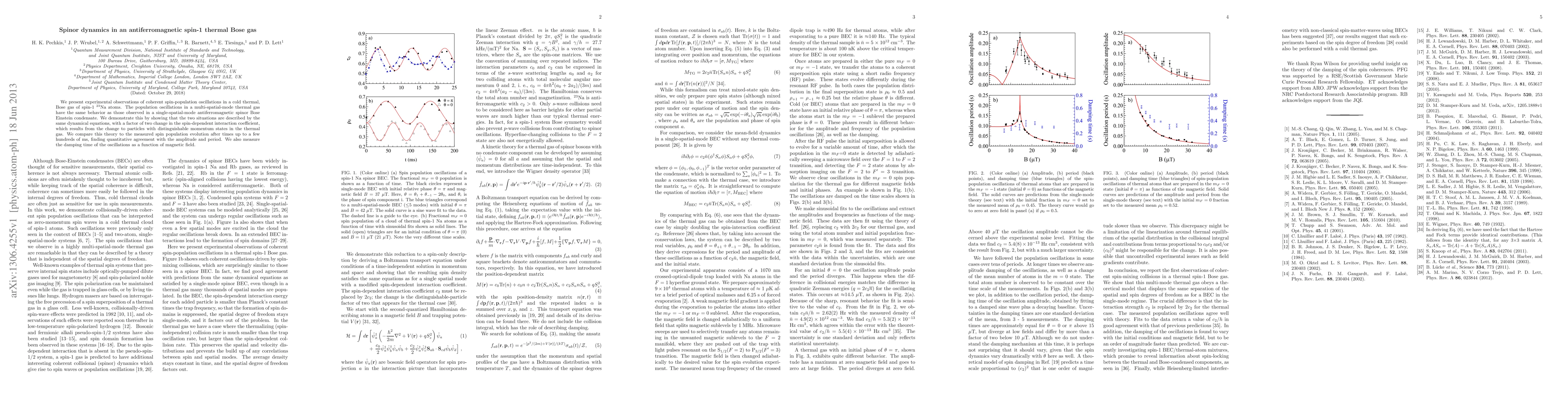 This paper reports experimental observations of coherent spin-population oscillations in a thermal Bose gas of spin-1 sodium-23 atoms, showing that these oscillations behave similarly to those in antiferromagnetic spinor Bose Einstein condensates. The study finds quantitative agreement between theoretical predictions and measurements, and investigates the damping time of oscillations under varying magnetic fields.