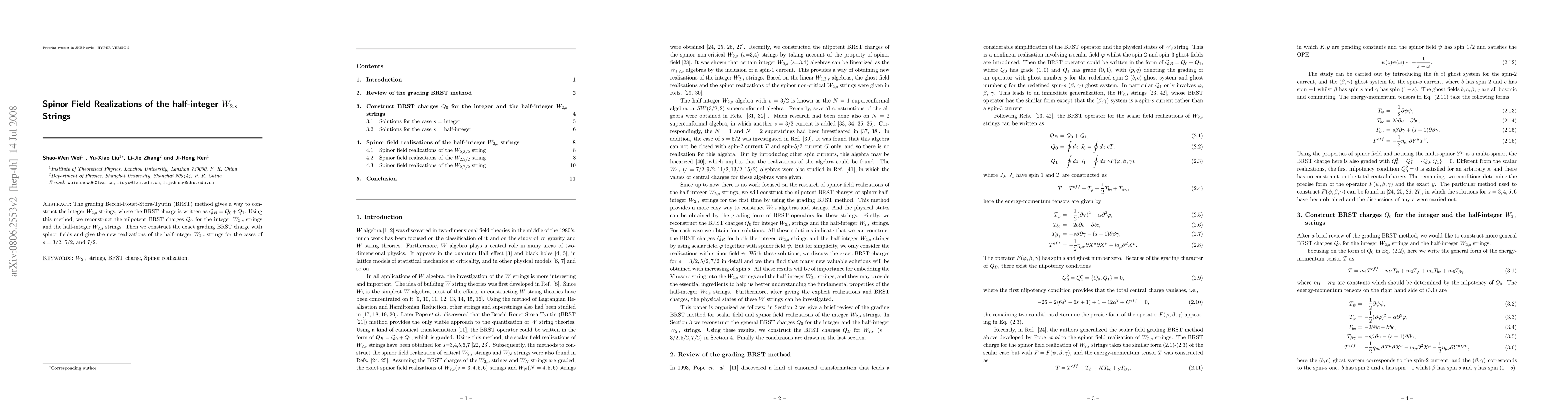 This paper utilizes the grading BRST method to construct integer and half-integer $W_{2,s}$ strings, providing new spinor field realizations for half-integer cases $s=3/2$, $5/2$, and $7/2$. The study reconstructs nilpotent BRST charges and introduces an exact grading BRST charge.