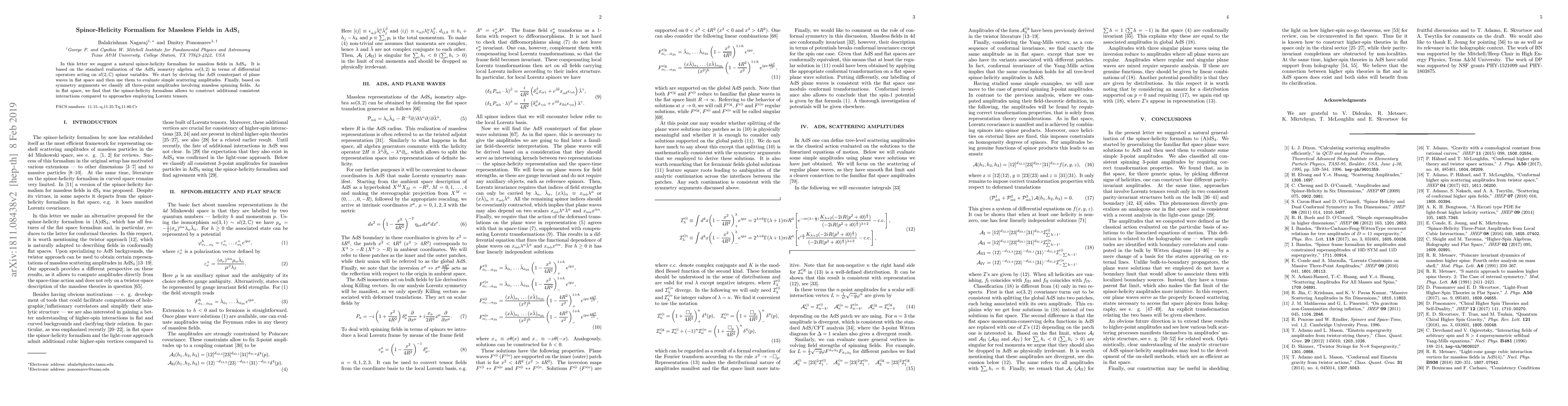 This paper proposes a spinor-helicity formalism for massless fields in AdS${}_4$, utilizing differential operators on $sl(2,\mathbb{C})$ spinors. It evaluates scattering amplitudes and classifies three-point interactions, revealing additional consistent interactions beyond tensor-based approaches.