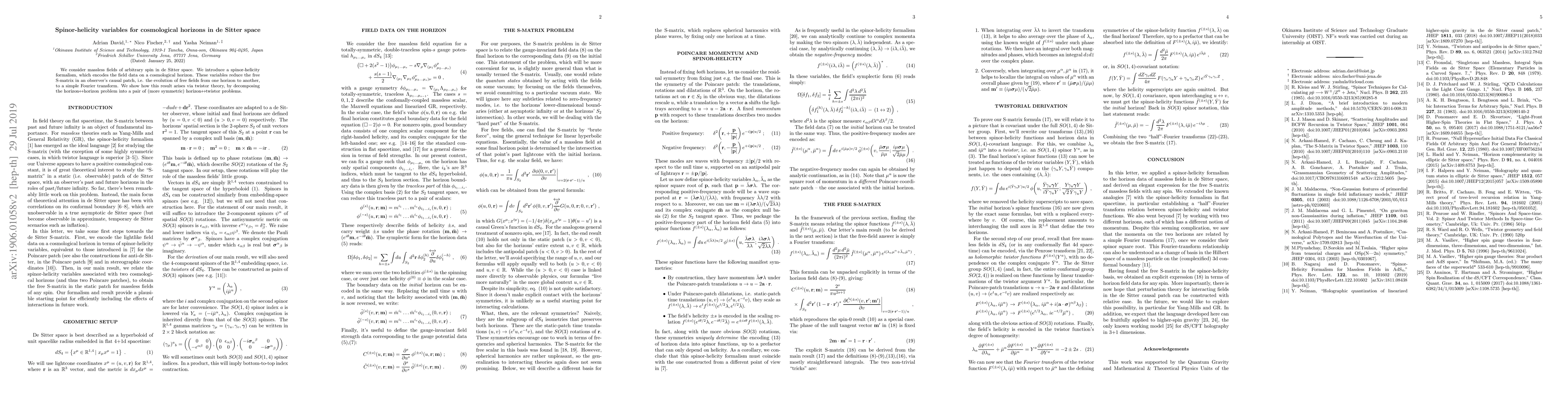 This paper introduces spinor-helicity variables for massless fields of arbitrary spin in de Sitter space, allowing the evolution of these fields across cosmological horizons to be simplified via a Fourier transform. The approach utilizes twistor theory to decompose horizon-to-horizon problems into horizon-to-twistor problems for enhanced symmetry and simplicity.