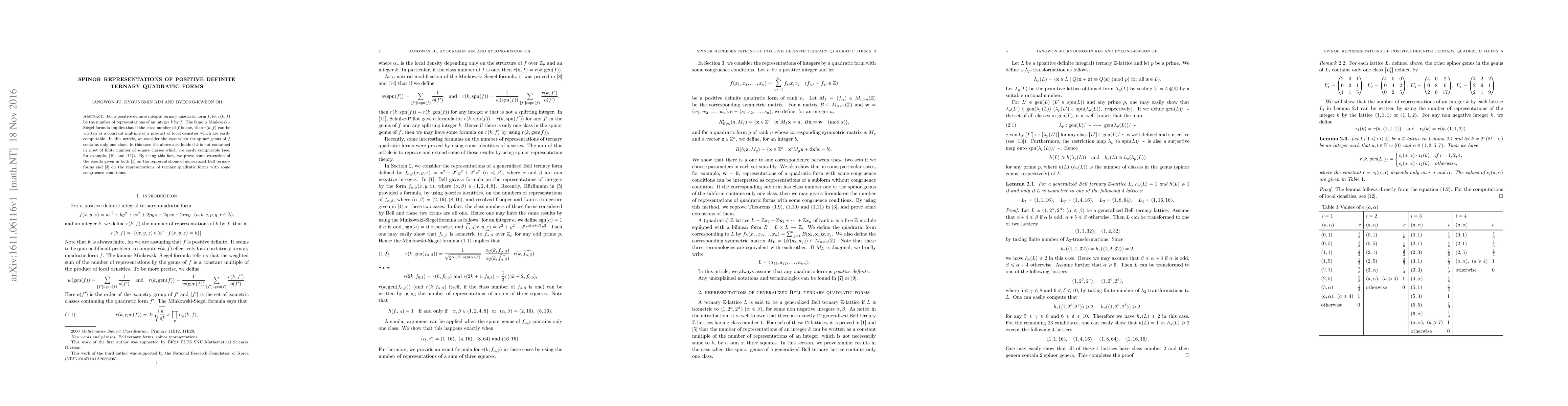 This paper investigates the representation numbers of positive definite integral ternary quadratic forms when their spinor genus contains only one class, extending Minkowski-Siegel formula results. It proves broader representation theorems for generalized Bell forms and ternary forms under certain congruence conditions.
