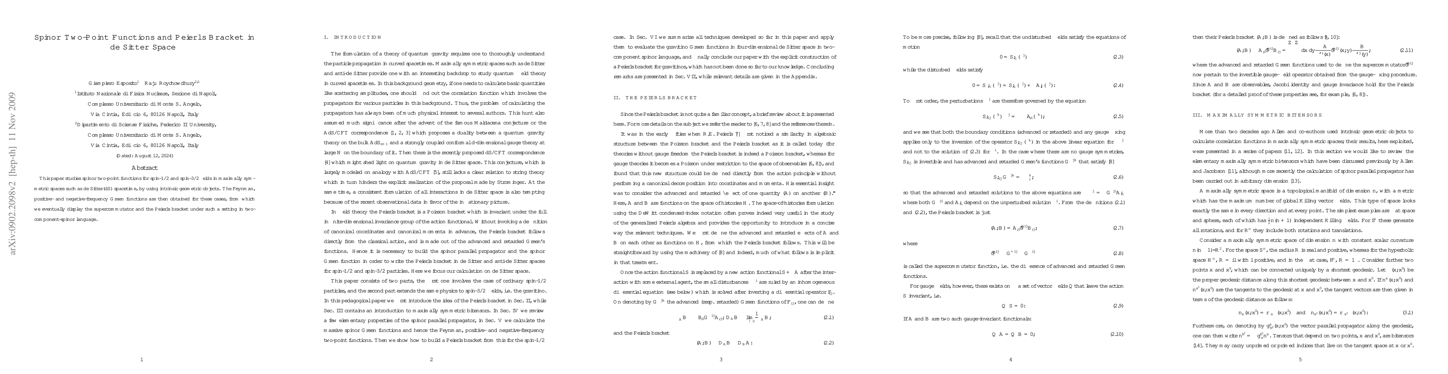 This paper studies spinor two-point functions in de Sitter space for spin-1/2 and spin-3/2 fields, obtaining Feynman Green functions that lead to the display of supercommutator and Peierls bracket.