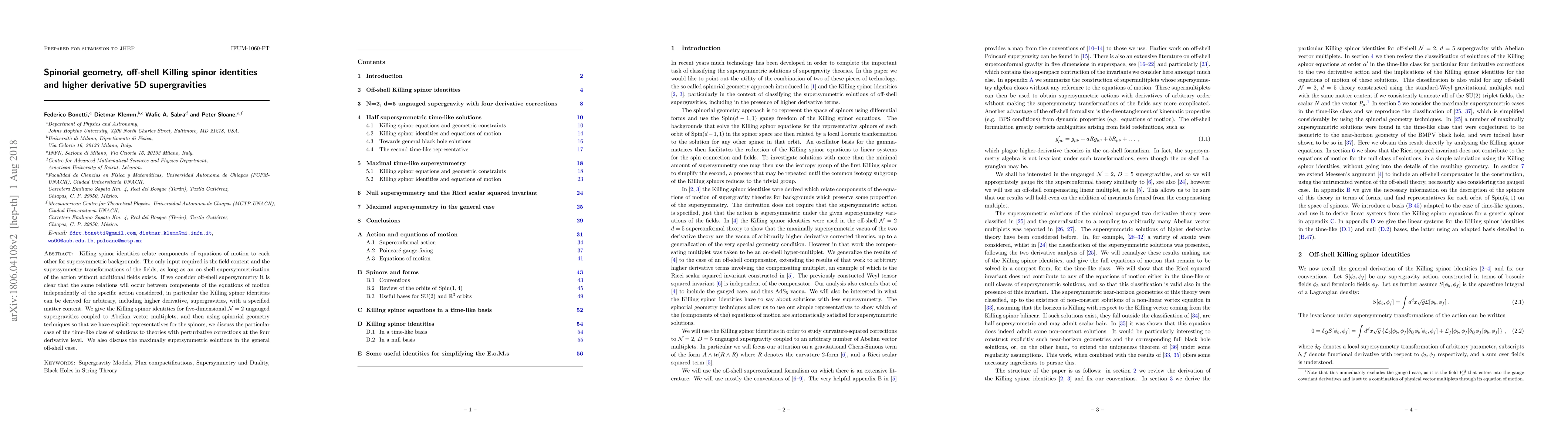 Researchers derived Killing spinor identities for 5D supergravities with arbitrary higher derivative terms, enabling a unified approach to supersymmetry transformations in ungauged theories. These findings have implications for understanding supersymmetric backgrounds, particularly in the context of perturbative corrections and maximally supersymmetric solutions.