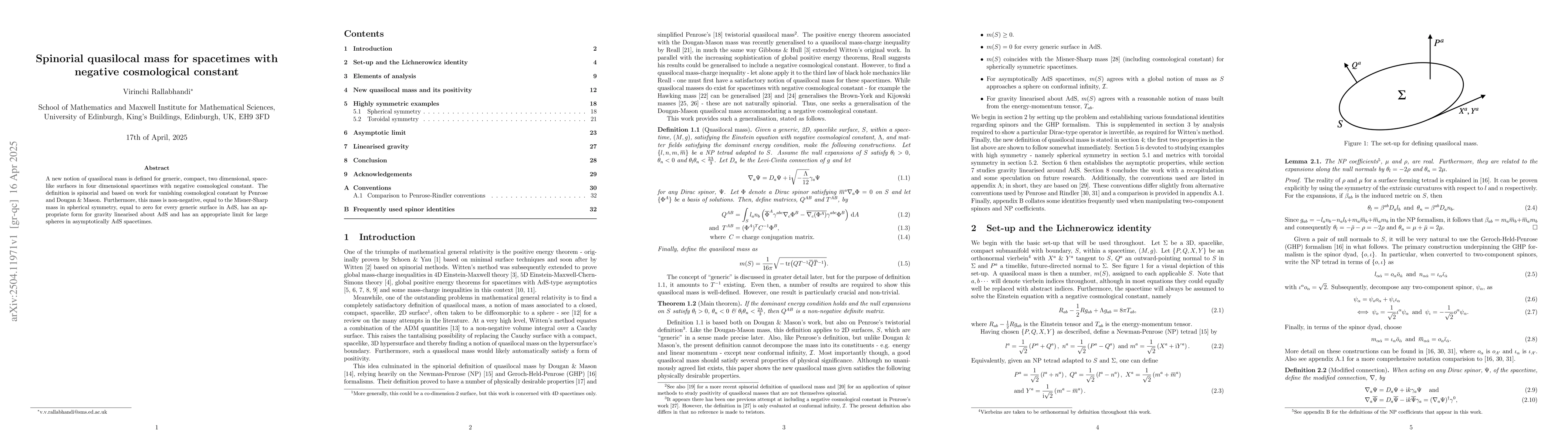The research introduces a new spinorial quasilocal mass definition for generic, compact, two-dimensional surfaces in four-dimensional spacetimes with a negative cosmological constant, extending previous work by Penrose and Dougan & Mason.