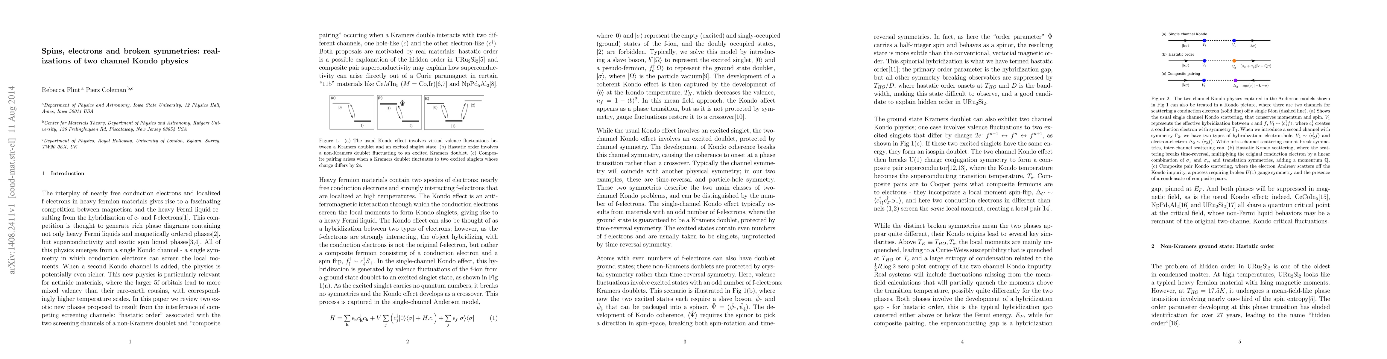 Adding a second Kondo channel to heavy fermion materials reveals new exotic symmetry breaking phases associated with the development of Kondo coherence. In this paper, we review two such phases, the "hastatic order" associated with non-Kramers doublet ground states, where the two-channel nature of the Kondo coupling is guaranteed by virtual valence fluctuations to an excited Kramers doublet, and "composite pair superconductivity," where the two channels differ by charge 2e and can be thought of as virtual valence fluctuations to a pseudo-isospin doublet. The similarities and differences between these two orders will be discussed, along with possible realizations in actinide and rare earth materials like URu2Si2 and NpPd5Al2.