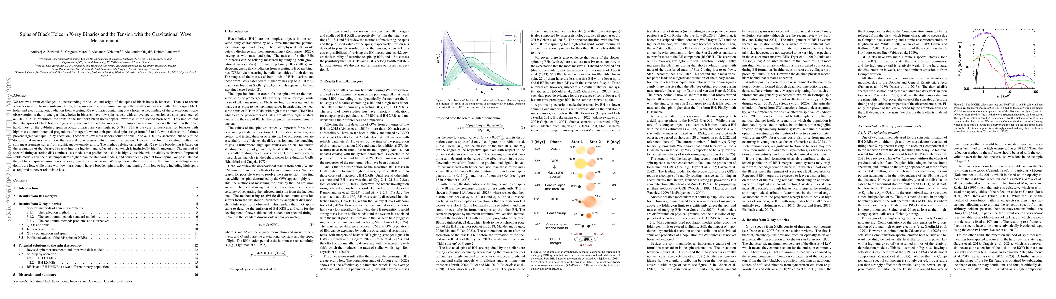 We review current challenges in understanding the values and origin of the spins of black holes in binaries. A key finding of the gravitational-wave observatories is that premerger black holes in binaries have low spin values, with an average dimensionless spin parameter of $a_*\sim$0.1-0.2. Furthermore, the spins in the first-born black holes appear lower than in the second-born ones. This implies that the natal spins of black holes are generally low, and the angular momentum transport in massive stars is efficient. On the other hand, most of the published spins in X-ray binaries are very high, $a_*\gtrsim 0.7$. This is the case, in particular, for binaries with high-mass donors (potential progenitors of mergers), where their published spins range from 0.8 to 1.0, while their short lifetimes prevent significant spin-up by accretion. Those with low-mass donors could be spun-up to $a_*\gtrsim 0.7$ by accretion, but only if the donor initial masses were more than several solar masses, which remains unproven. However, we find the existing methods of spin measurements suffer from significant systematic errors. The method relying on relativistic X-ray line broadening is based on the separation of the observed spectra into the incident and reflected ones, which is intrinsically highly uncertain. The method of spectral fitting accretion disk continua uses models that predict the disk to be highly unstable, while stability is observed. Improved stable models give the disk temperatures higher than the standard models, and consequently predict lower spins. We postulate that the published spin measurements in X-ray binaries are uncertain. We hypothesize that the spins of the binaries with high-mass donors are low, while those with low-mass donors have a broader spin distribution, ranging from low to high, including high spins as required to power relativistic jets.