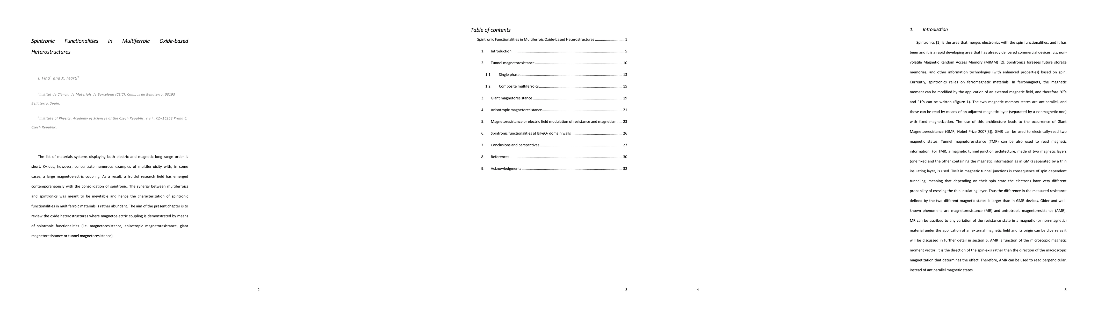 The list of materials systems displaying both electric and magnetic long range order is short. Oxides, however, concentrate numerous examples of multiferroicity with, in some cases, a large magnetoelectric coupling. As a result, a fruitful research field has emerged contemporaneously with the consolidation of spintronic. The synergy between multiferroics and spintronics was meant to be inevitable and hence the characterization of spintronic functionalities in multiferroic materials is rather abundant. The aim of the present chapter is to review the oxide heterostructures where magnetoelectric coupling is demonstrated by means of spintronic functionalities (i.e. magnetoresistance, anisotropic magnetoresistance, giant magnetoresistance or tunnel magnetoresistance).