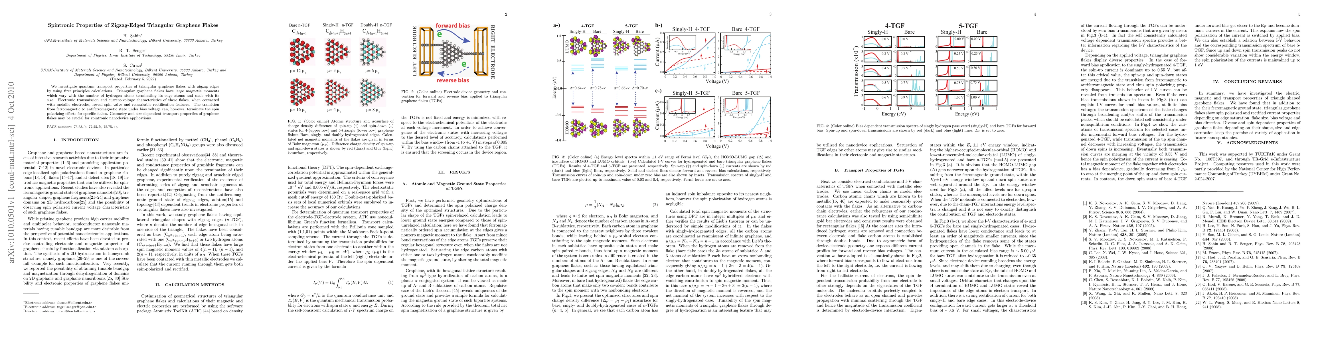 This study explores quantum transport in zigzag-edged triangular graphene flakes, revealing spin valve and rectification properties through first principles calculations. The magnetic moments and spin-polarizing effects depend on geometry, size, and hydrogen termination, though bias voltage can switch these flakes between ferromagnetic and antiferromagnetic states, affecting their spintronic applications.