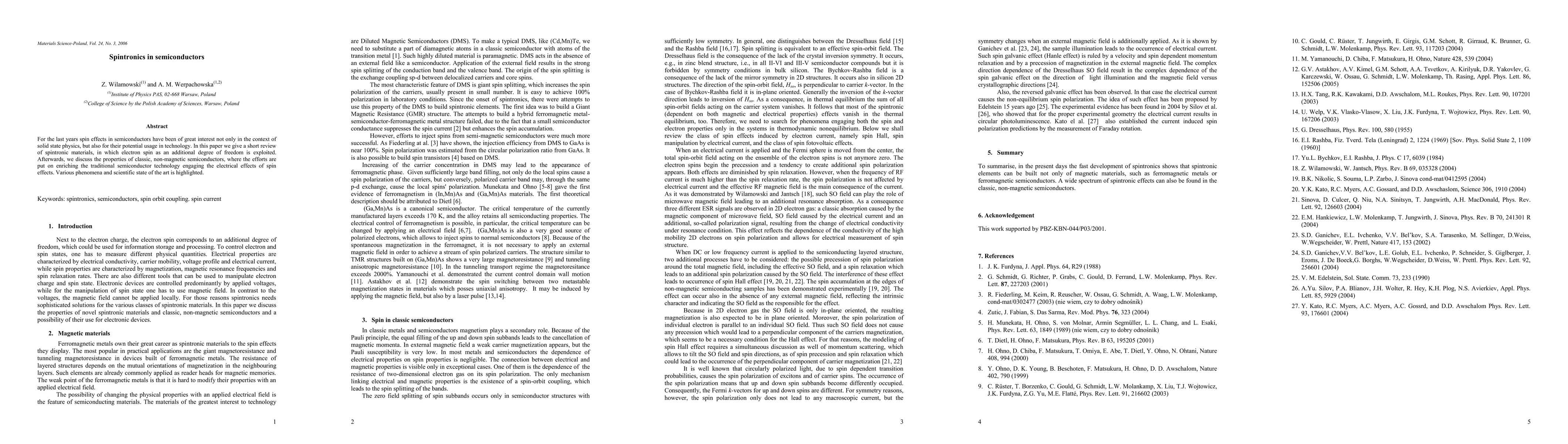 For the last years spin effects in semiconductors have been of great interest not only in the context of solid state physics, but also for their potential usage in technology. In this paper we give a short review of spintronic materials, in which electron spin as an additional degree of freedom is exploited. Afterwards, we discuss the properties of classic, non-magnetic semiconductors, where the efforts are put on enriching the traditional semiconductor technology engaging the electrical effects of spin effects. Various phenomena and scientific state of the art is highlighted.