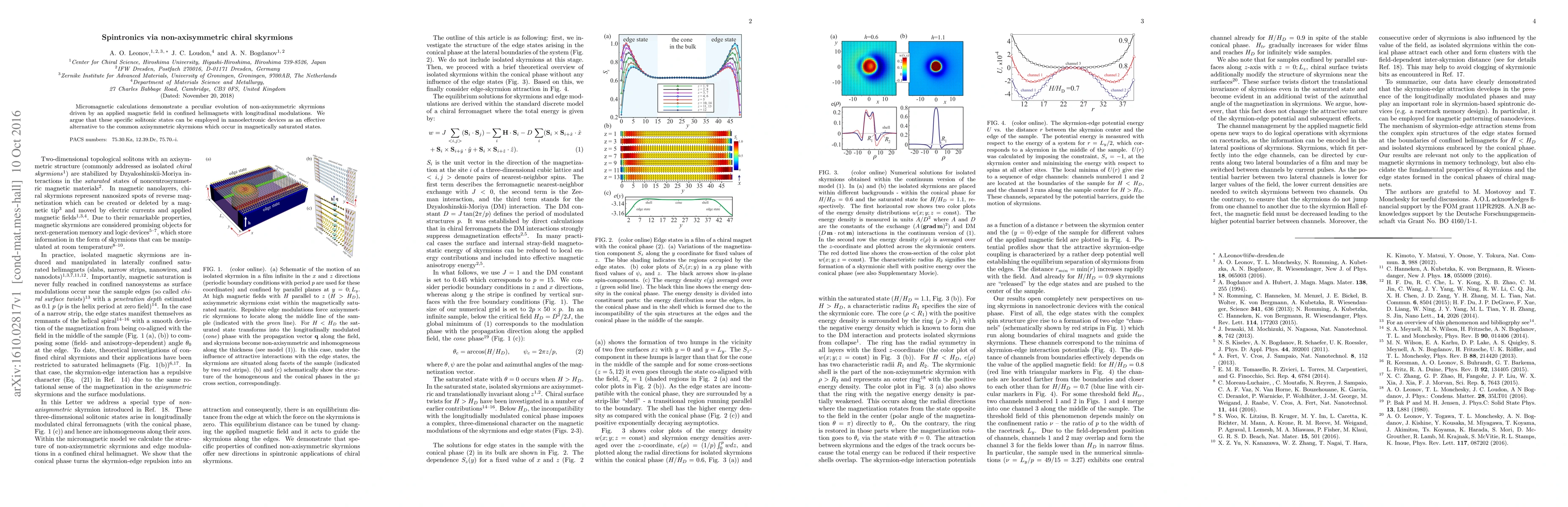 Summary: This paper explores the behavior of non-axisymmetric chiral skyrmions in helimagnets under magnetic fields, suggesting their potential for spintronics applications as an alternative to conventional axisymmetric skyrmions. The findings propose a new direction for nanoelectronic devices.