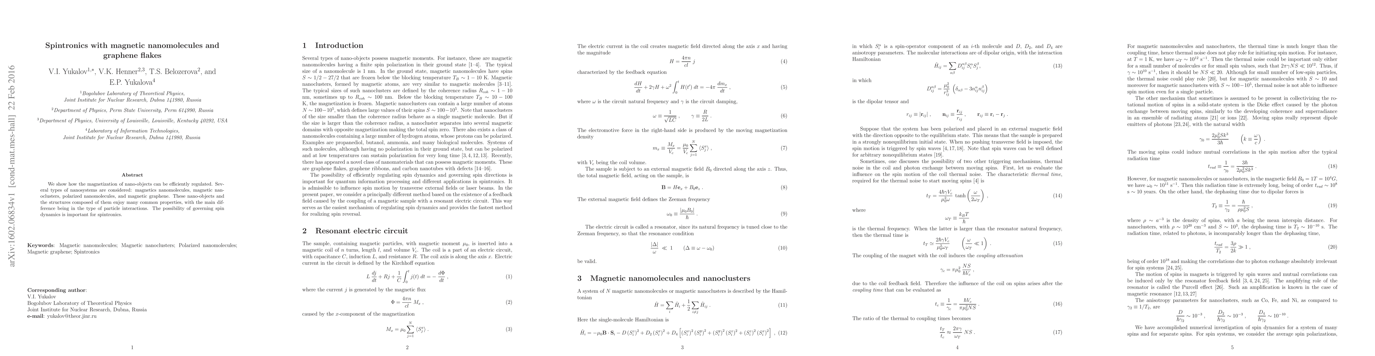 This paper explores the regulation of magnetization in various magnetic nano-objects, including nanomolecules, nanoclusters, polarized nanomolecules, and magnetic graphene. The study highlights the potential for controlling spin dynamics, which is crucial for advancements in spintronics.