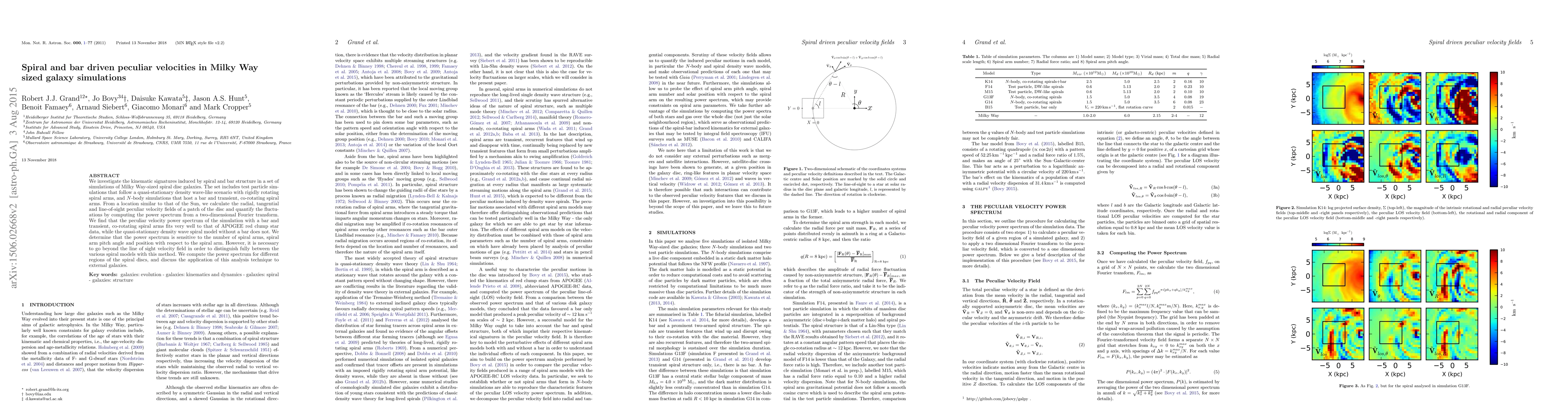 This research examines the peculiar velocity fields in Milky Way-sized galaxy simulations driven by spiral and bar structures, finding that the presence of a bar and transient spiral arms closely matches observed velocity power spectra of red clump stars. The study highlights the sensitivity of the power spectrum to the number and configuration of spiral arms.