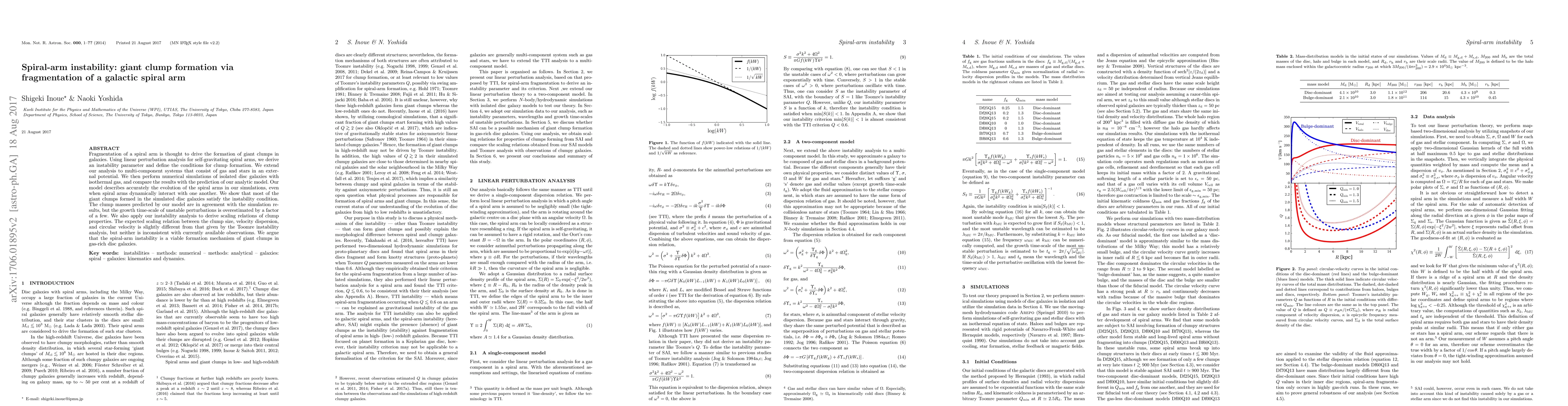 This paper investigates the formation of giant clumps in spiral galaxies through the fragmentation of spiral arms, deriving an instability parameter and conditions for clump formation. Numerical simulations confirm the model's accuracy in predicting clump evolution and masses, though the growth time-scale is overestimated. The study suggests spiral-arm instability as a plausible mechanism for clump formation in gas-rich disc galaxies.