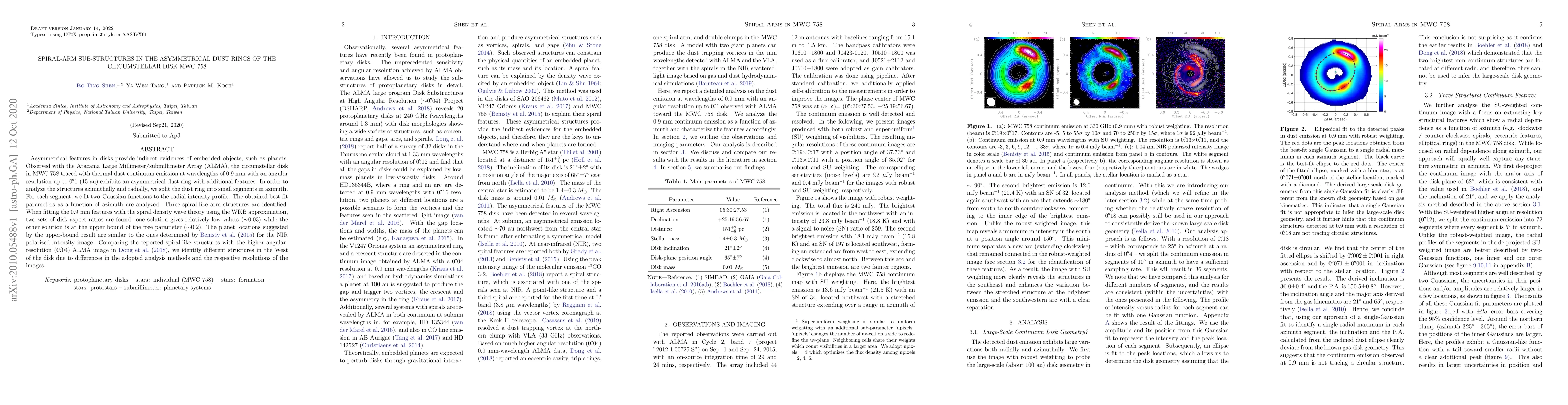 Using ALMA, researchers analyzed the circumstellar disk of MWC 758, identifying three spiral-arm structures within its asymmetrical dust ring. They employed Gaussian fitting and spiral density wave theory, suggesting potential planet locations. Comparison with higher-resolution ALMA images revealed differences due to varying analysis methods and resolutions.