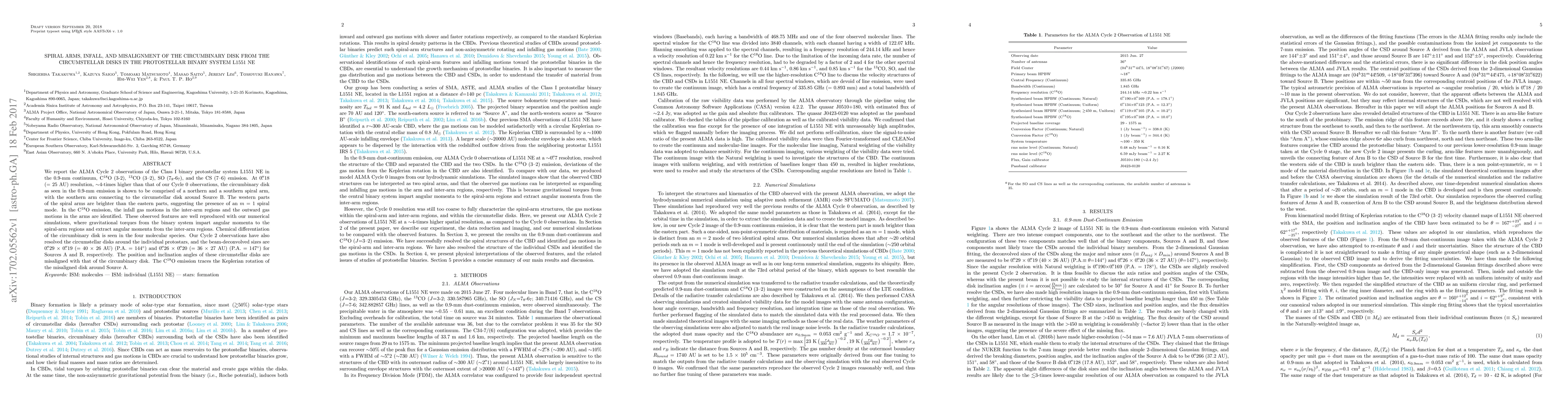 This paper reports ALMA Cycle 2 observations of the L1551 NE protostellar binary system, revealing a circumbinary disk with northern and southern spiral arms, infall, and misalignment. The circumstellar disks around the protostars are misaligned with the circumbinary disk, and the C18O emission indicates Keplerian rotation.