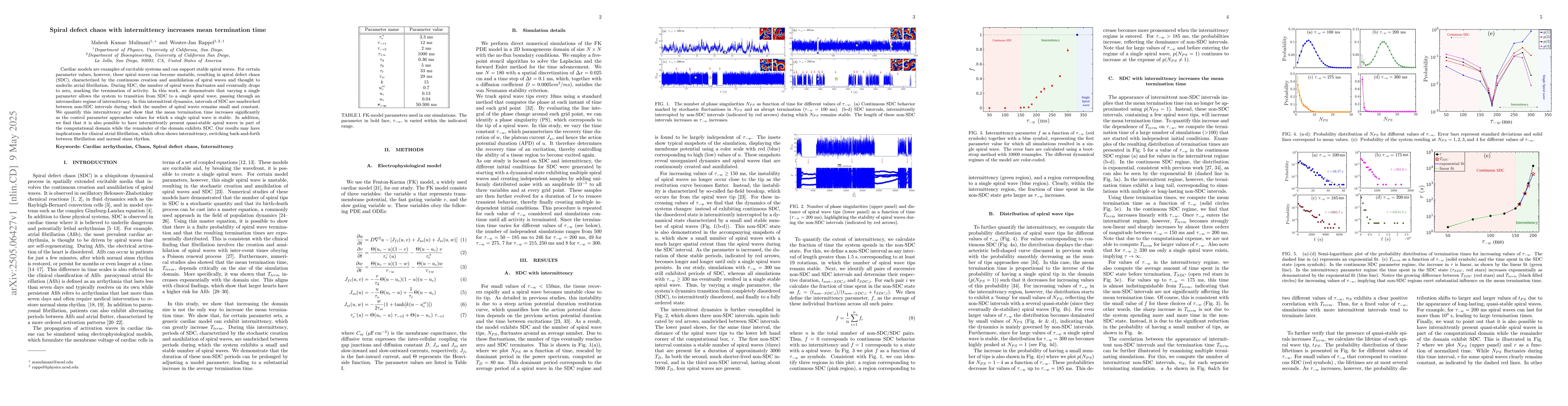 The work identifies an intermediate regime of intermittency between SDC and a single spiral wave state, quantifying this phenomenon and its implications for mean termination time.